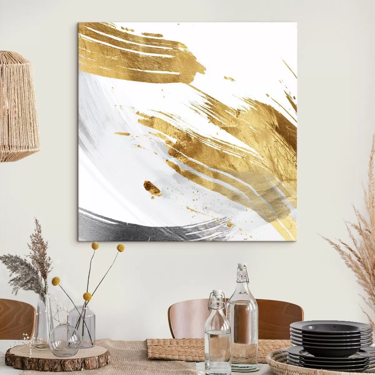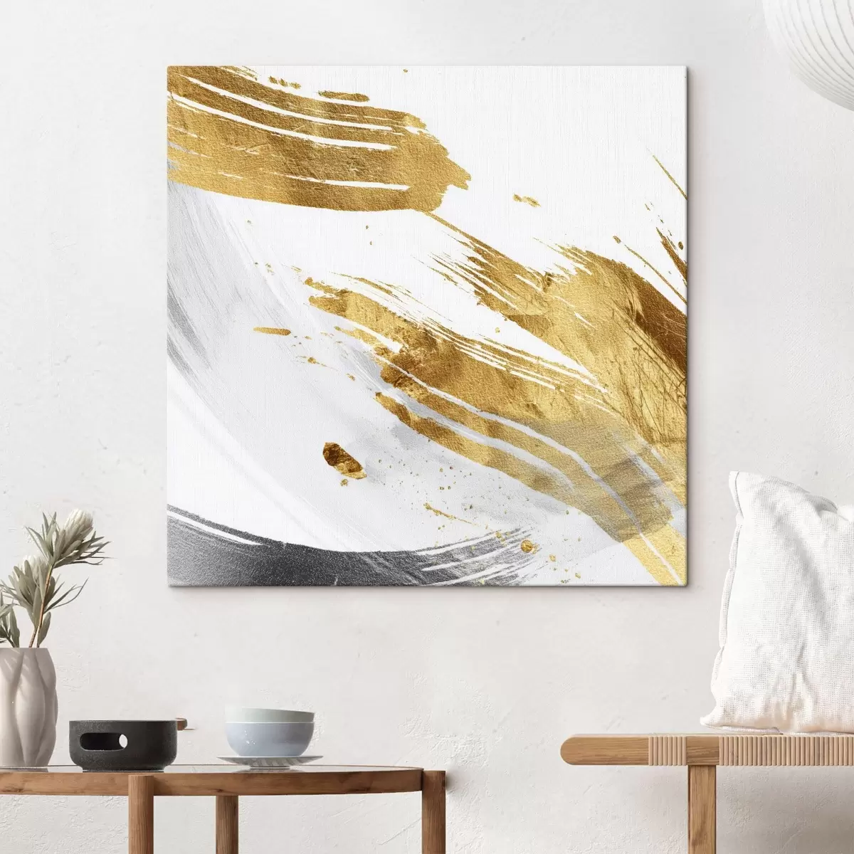 Glezna Dinamiski triepieni balta un dzeltena-pelēka toņos s45866