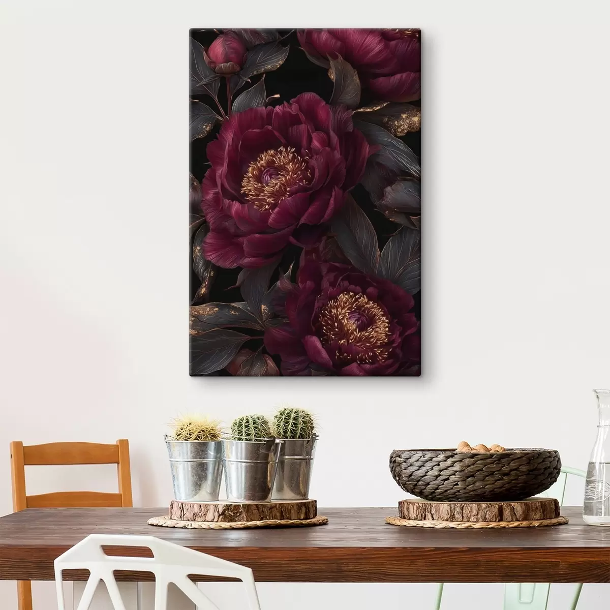 Glezna Burgundijas peonijas uz melna fona ar dzelteniem akcentiem Nr s45877