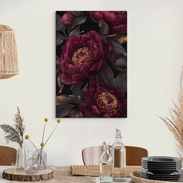 Glezna Burgundijas peonijas uz melna fona ar dzelteniem akcentiem Nr s45877