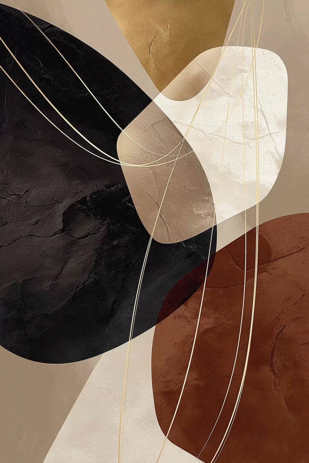 Glezna Ģeometriskas formas siltā krāsu gamā, smalkas līnijas s45879
