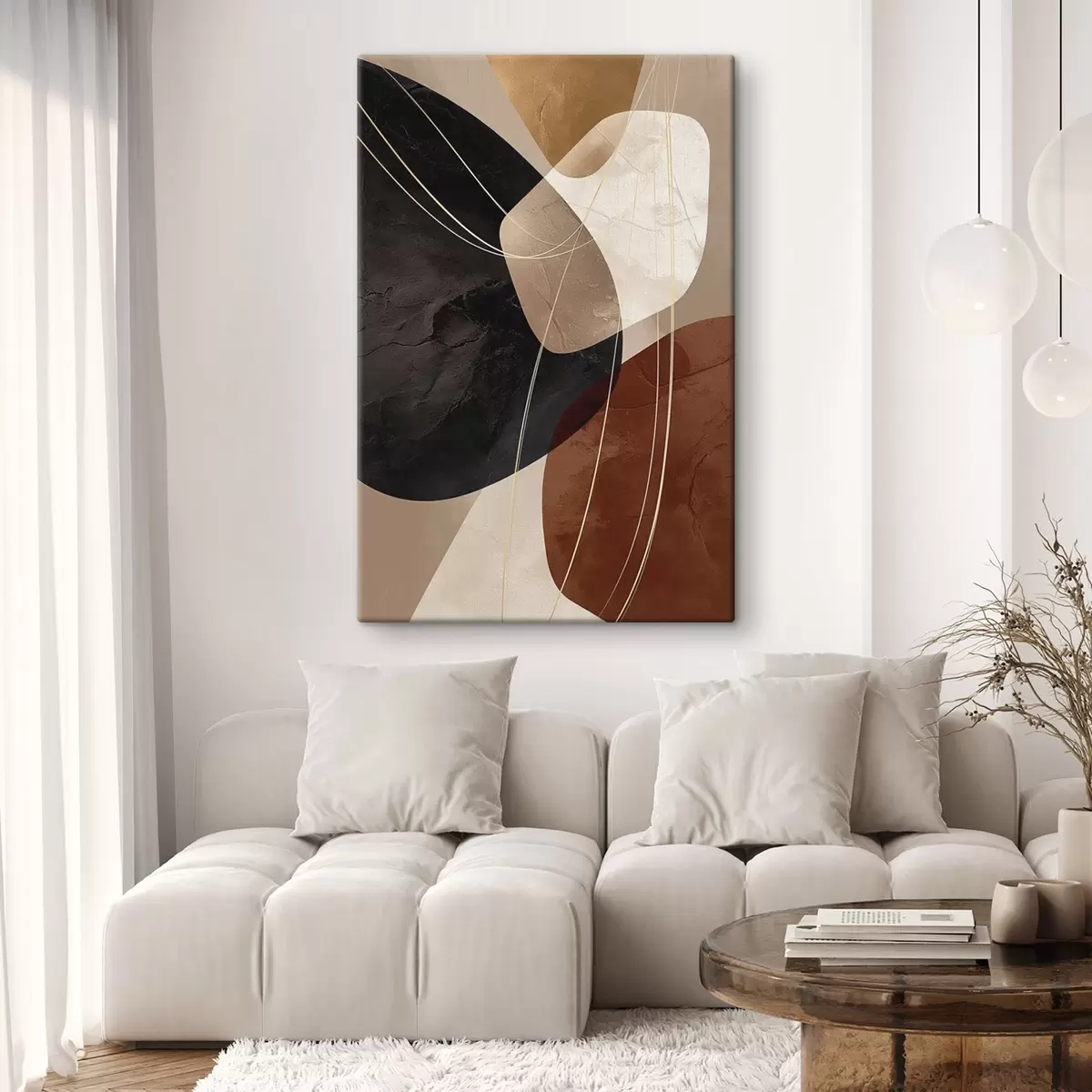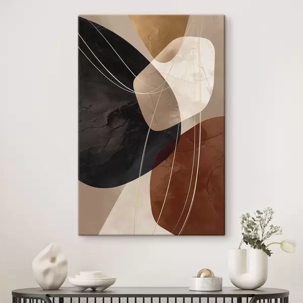 Glezna Ģeometriskas formas siltā krāsu gamā, smalkas līnijas Nr s45879