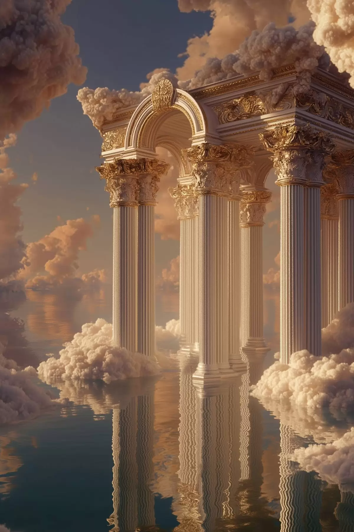 Glezna Kolonnas mākoņos, atspoguļojumi uz ūdens Nr s45881