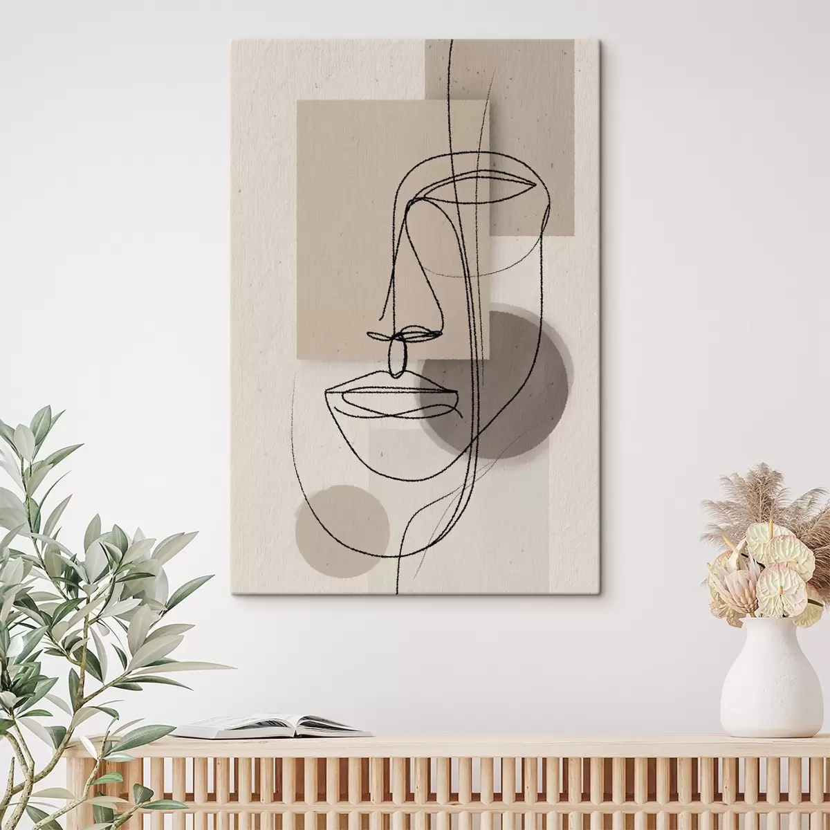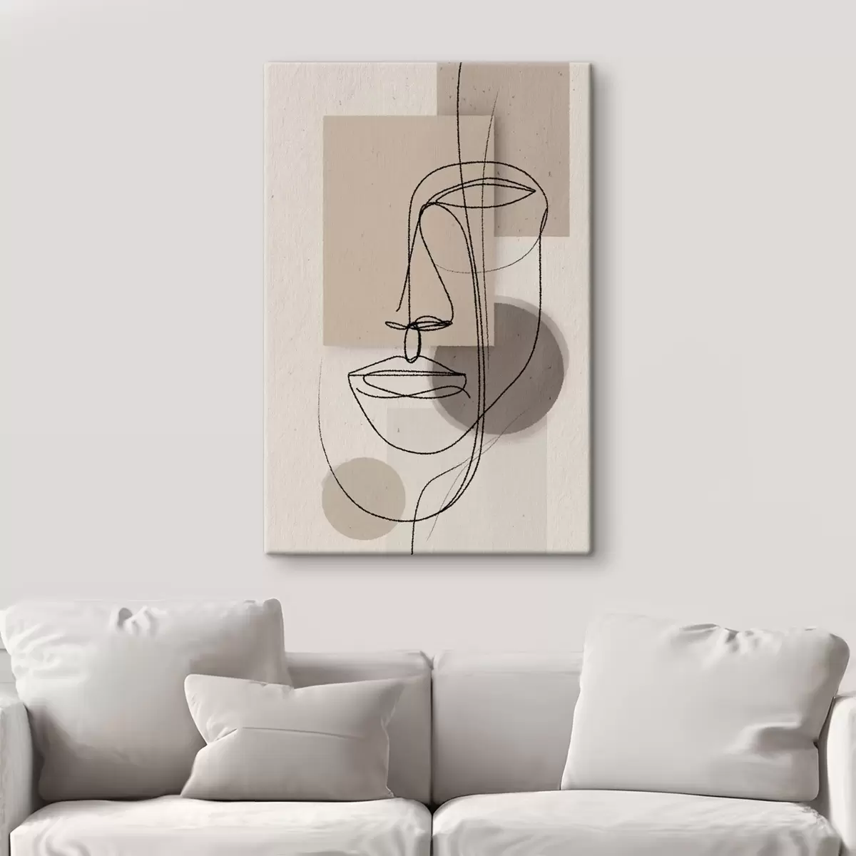 Glezna Līniju portrets uz smilškrāsas ģeometriskām figūrām Nr s45886