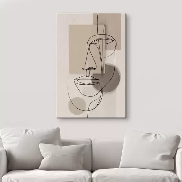 Glezna Līniju portrets uz smilškrāsas ģeometriskām figūrām Nr s45886