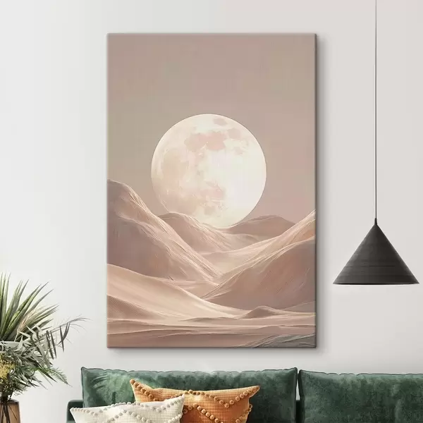Glezna Mēness virs smilšainām kāpām rozā toņos Nr s45892