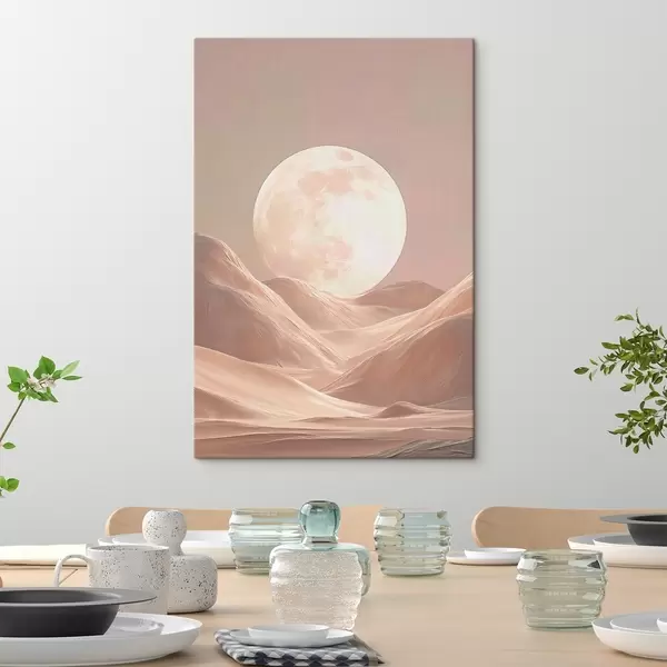 Glezna Mēness virs smilšainām kāpām rozā toņos Nr s45892