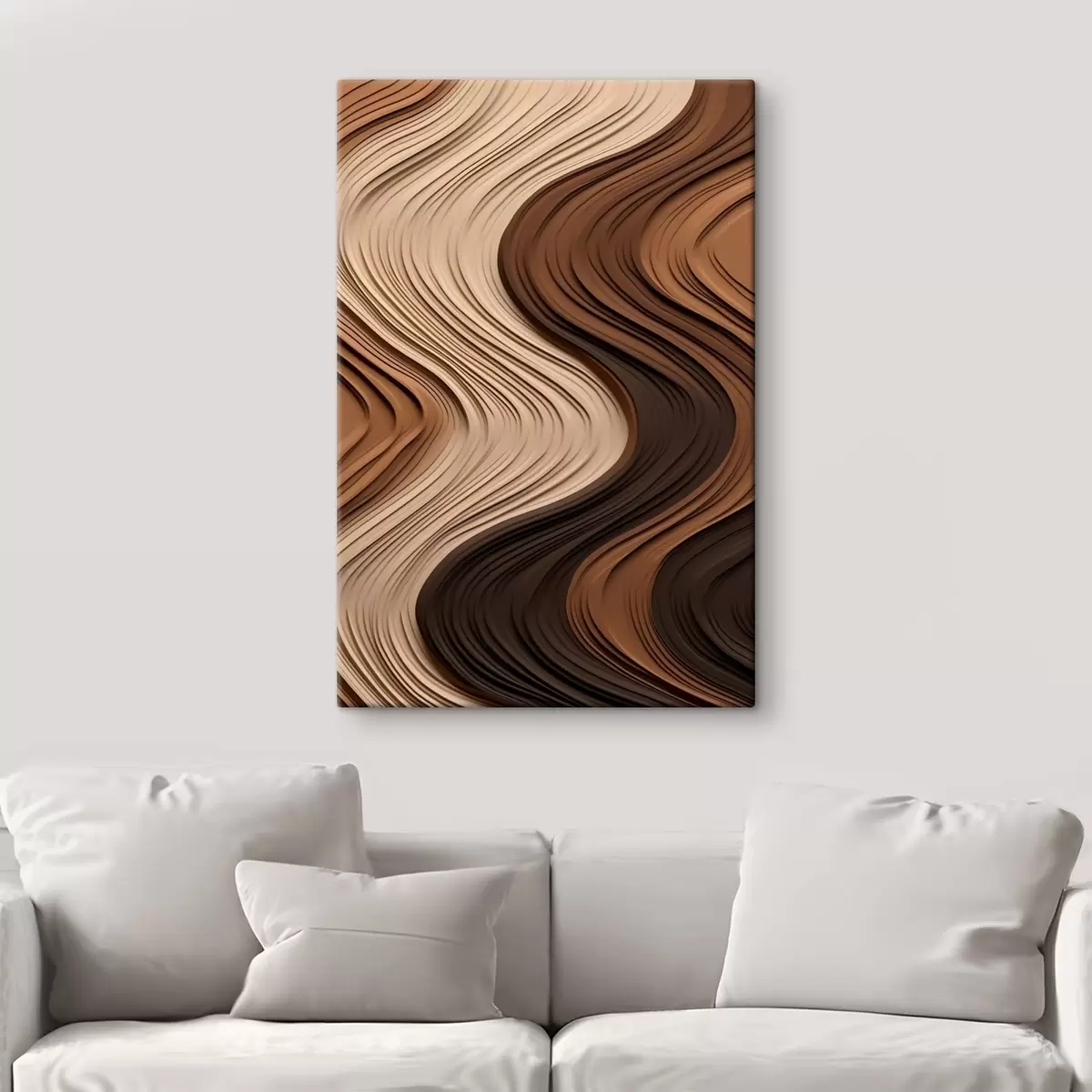 Glezna Vertikālas viļņveida līnijas siltā smilškrāsā-brūnā tonī s45905