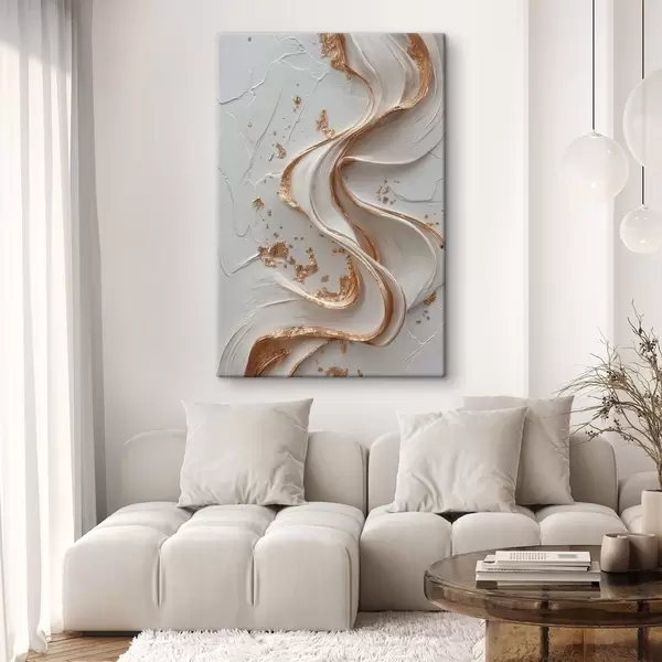 Glezna Baltas un dzeltenas teksturētas līnijas ar metāliskiem akcentiem s45906