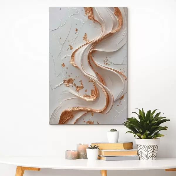 Glezna Baltas un dzeltenas teksturētas līnijas ar metāliskiem akcentiem s45906