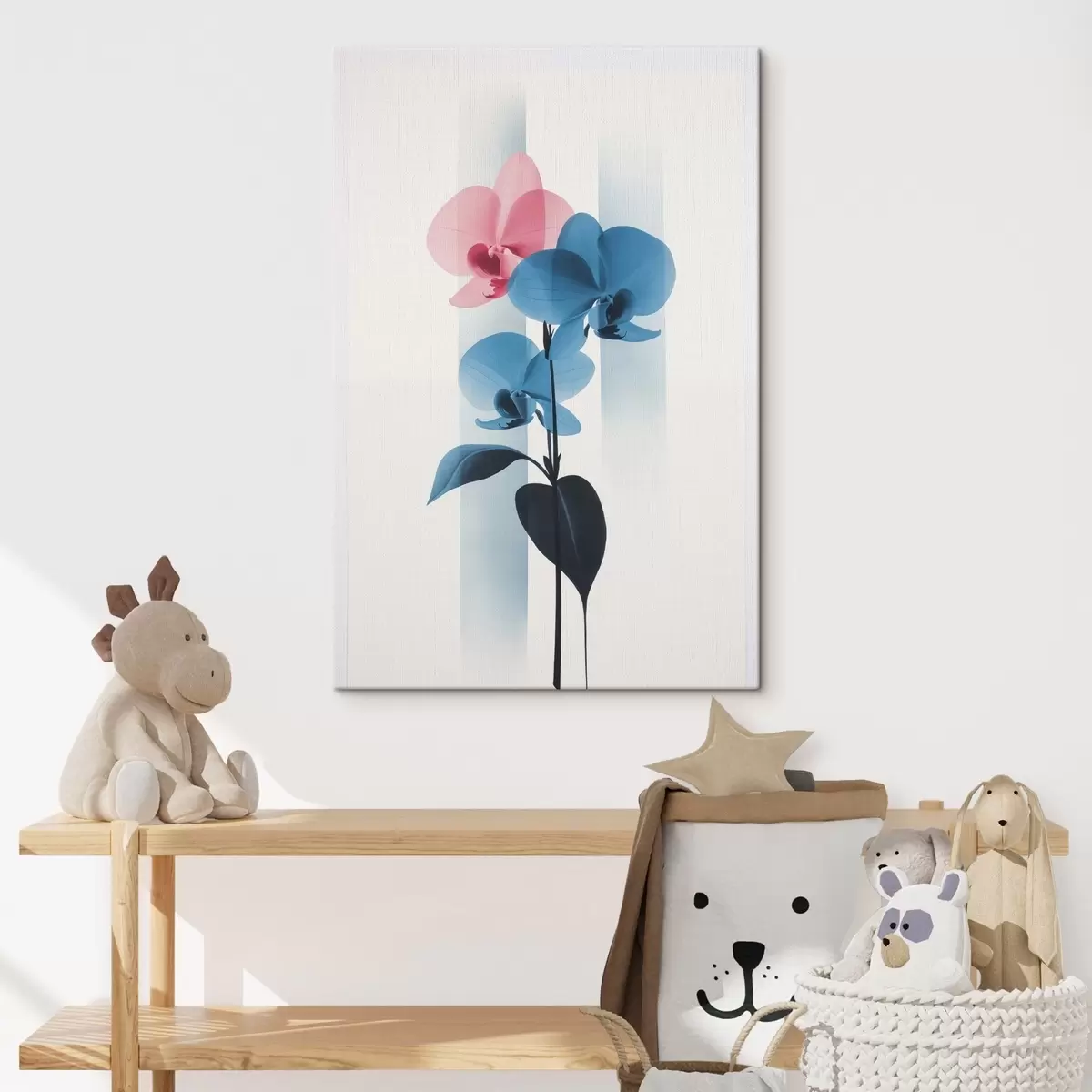 Glezna Orhidejas ar lapām uz balta fona ar vertikālām svītrām Nr s45925