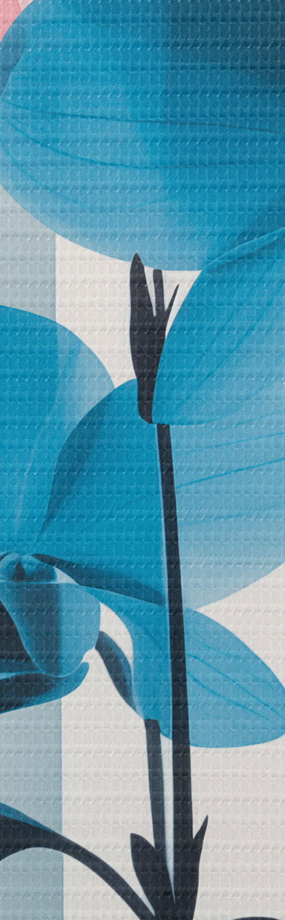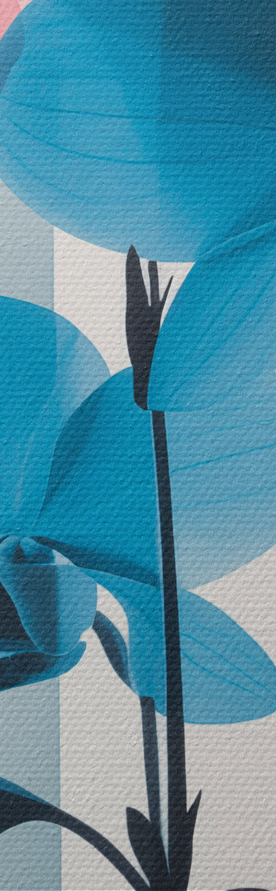 Glezna Orhidejas ar lapām uz balta fona ar vertikālām svītrām s45925