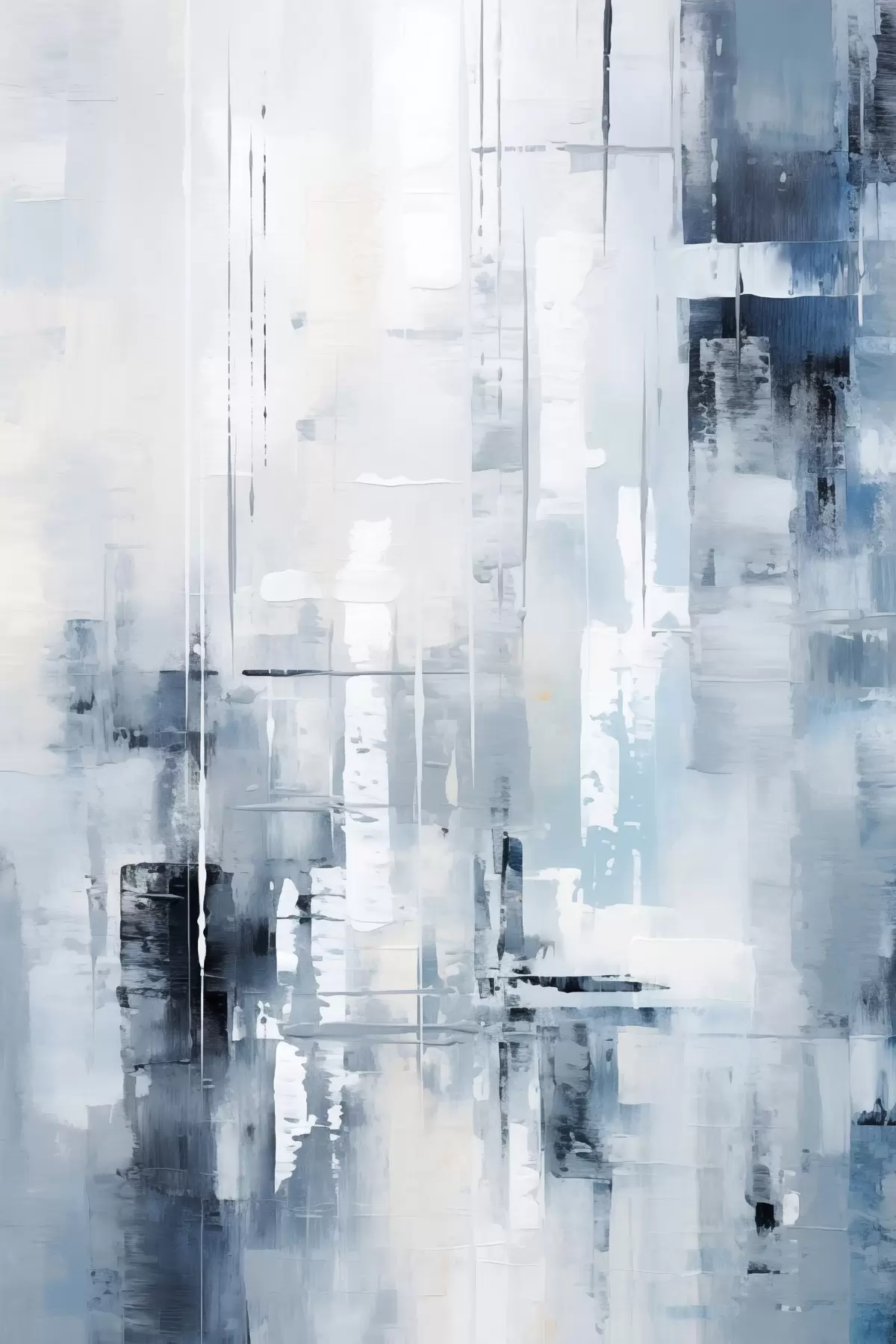 Glezna Abstrakta glezna, kurā izmantotas zilas, pelēkas un baltas krāsas, vertikālas līnijas un ģeometriskas formas Nr s45927