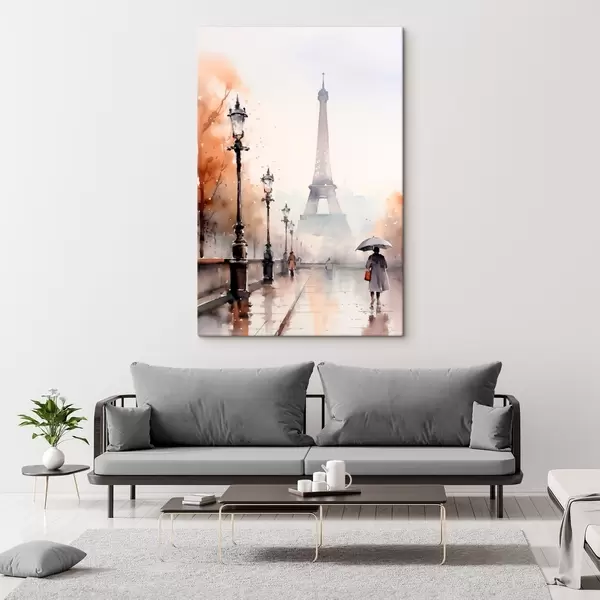 Glezna Lietains diena Parīzē ar Eifeļa torni fonā un vintage ielu laternām Nr s45930