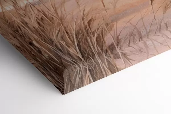 Glezna Pampas zāle ar pasteļoranžu krāsu paleti, gaiši rozā debesis, mierīgs ainava s45935