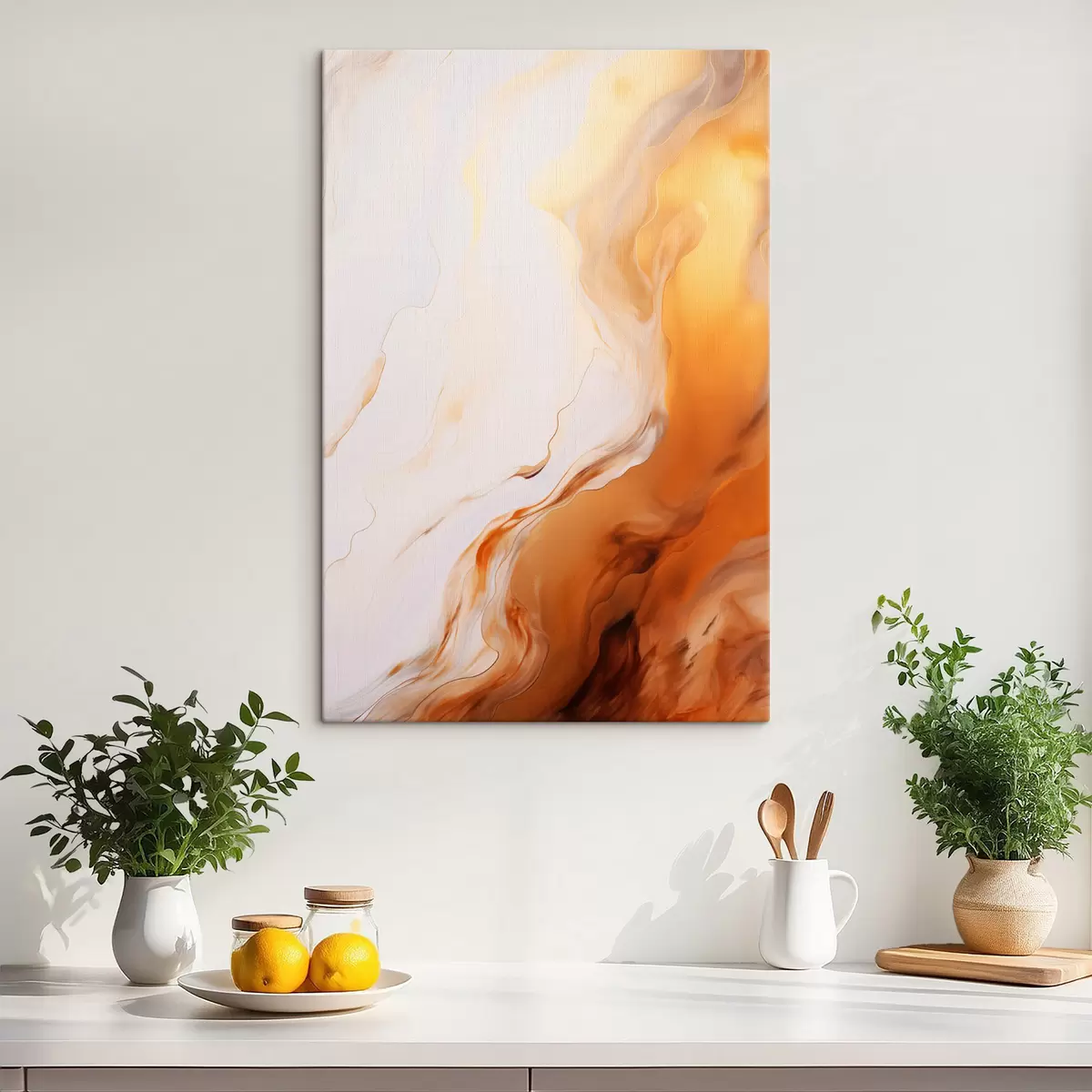 Glezna Abstraktā glezniecība ar balto un oranžo krāsu imitāciju, plūstoša māksla ar viļņotām līnijām, modernā māksla Nr s45939