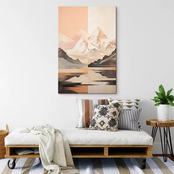 Glezna Abstrakts ainava ar kalniem un ezeru, pasteļtoņos, minimālisma stilā s45948