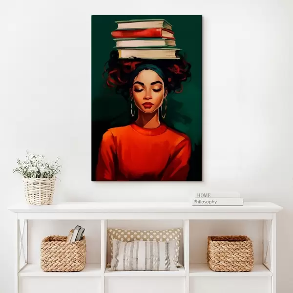Glezna Sieviete ar grāmatām uz galvas s45952