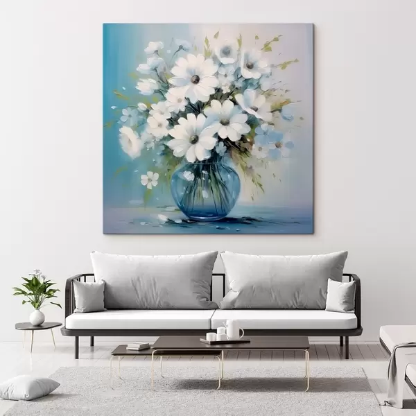 Glezna Margrietiņu pušķis zilā vāzē s45959