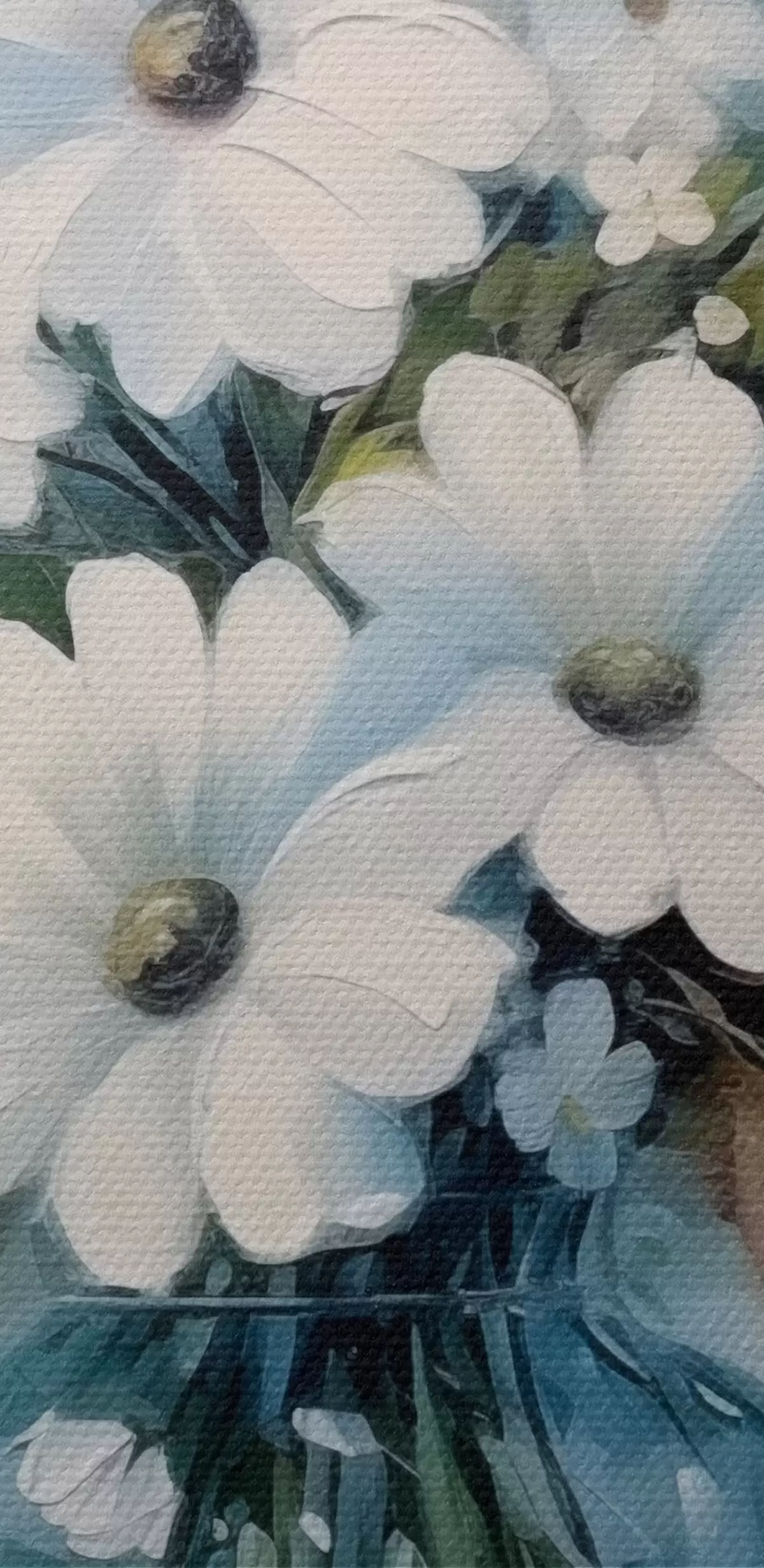 Smalkais diegu pinums uz šī audekla atgādina profesionālu mākslinieku audeklu virsmu.
