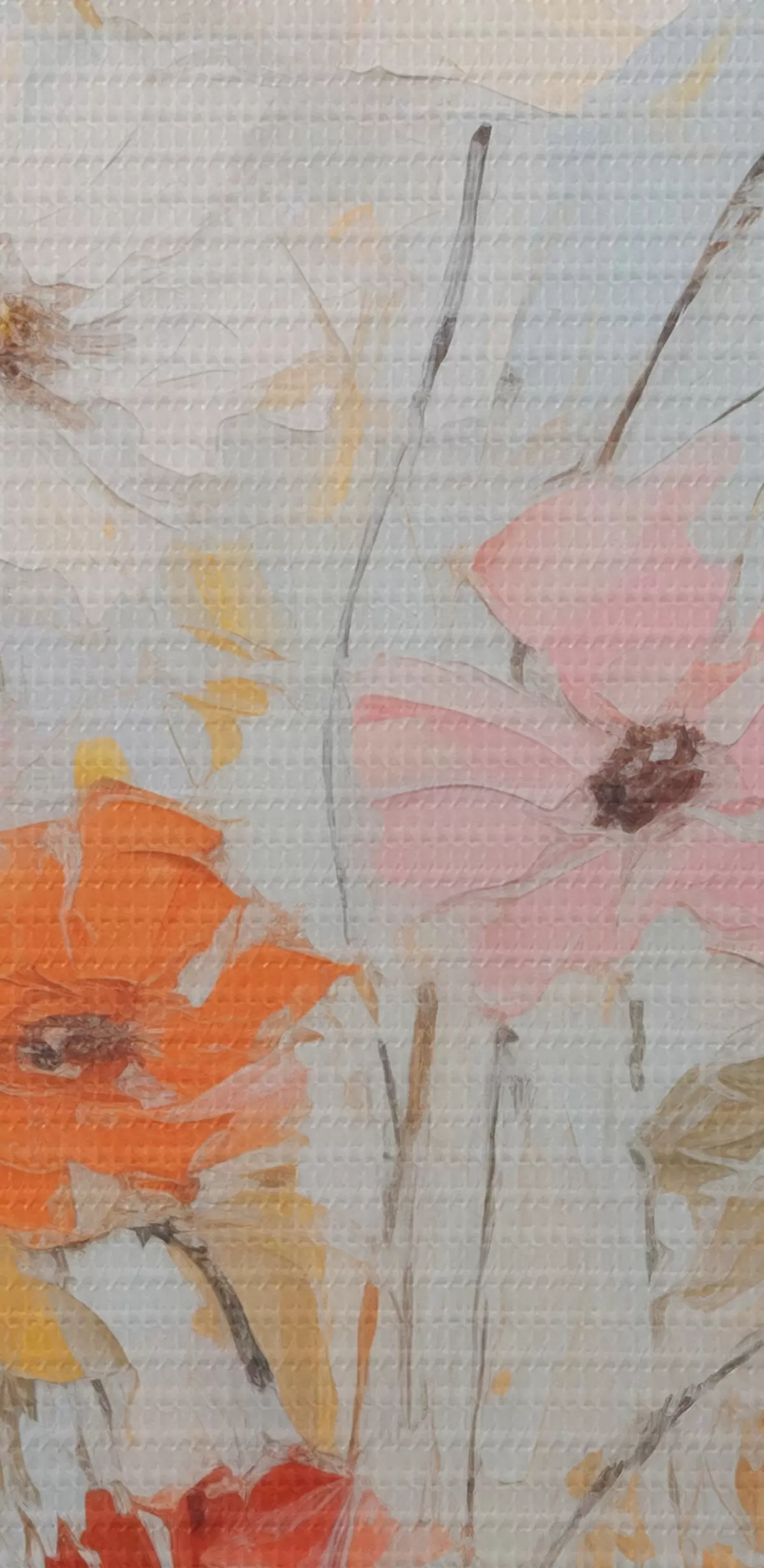 Smalkais diegu pinums uz šī audekla atgādina profesionālu mākslinieku audeklu virsmu.