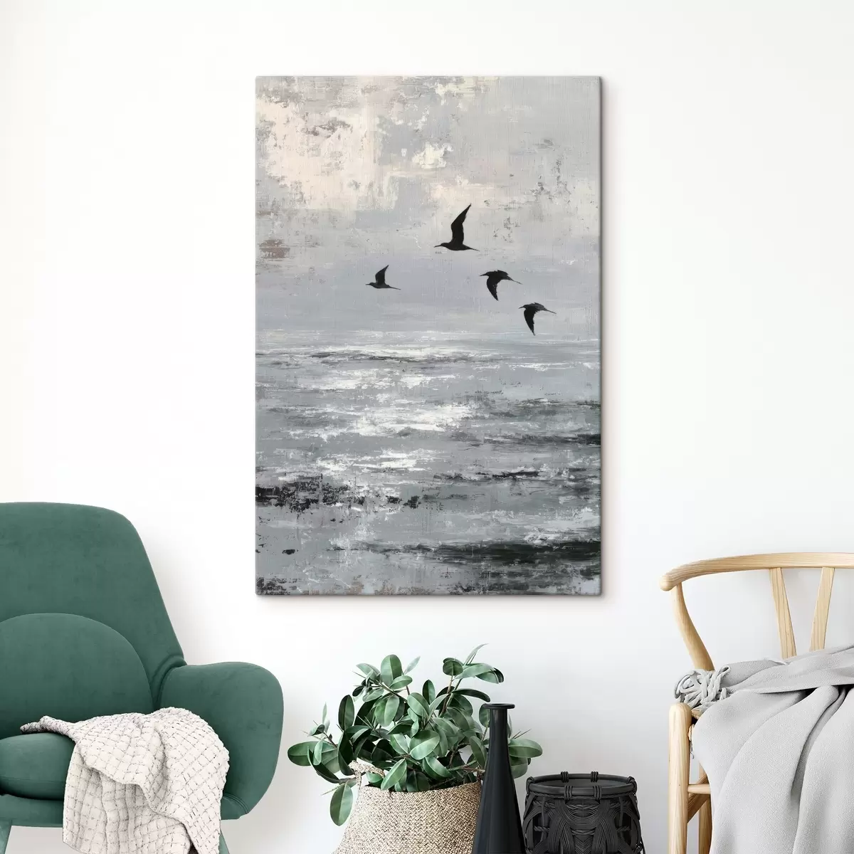 Glezna Abstrakts ainavas ar putniem s46004