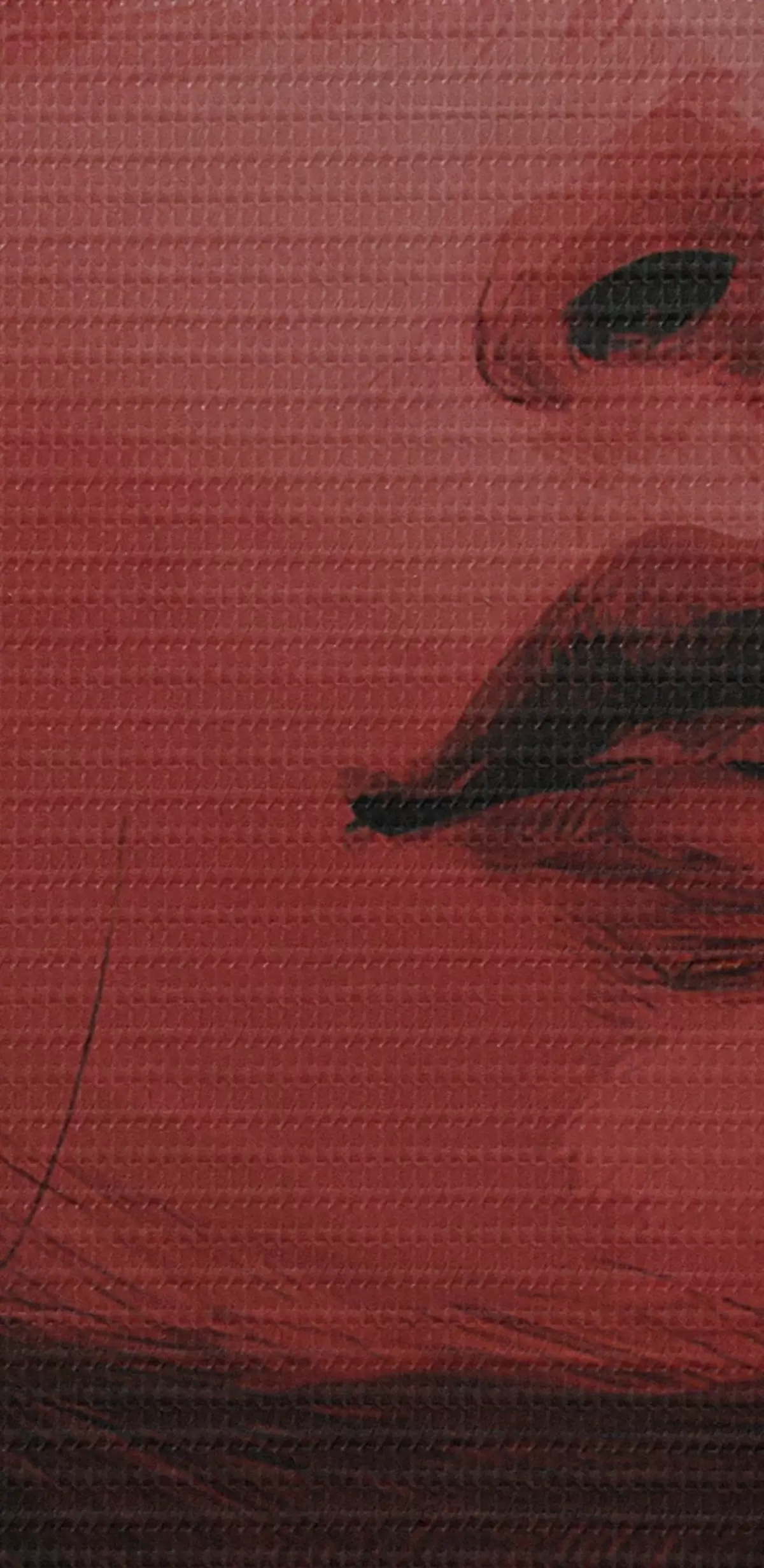 Smalkais diegu pinums uz šī audekla atgādina profesionālu mākslinieku audeklu virsmu.