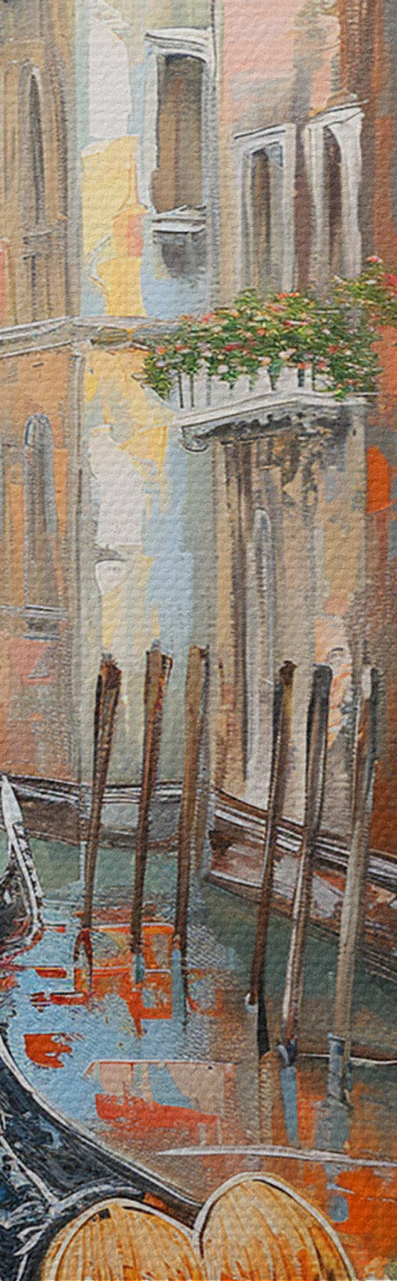 Smalkais diegu pinums uz šī audekla atgādina profesionālu mākslinieku audeklu virsmu.
