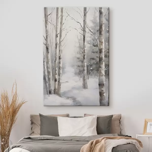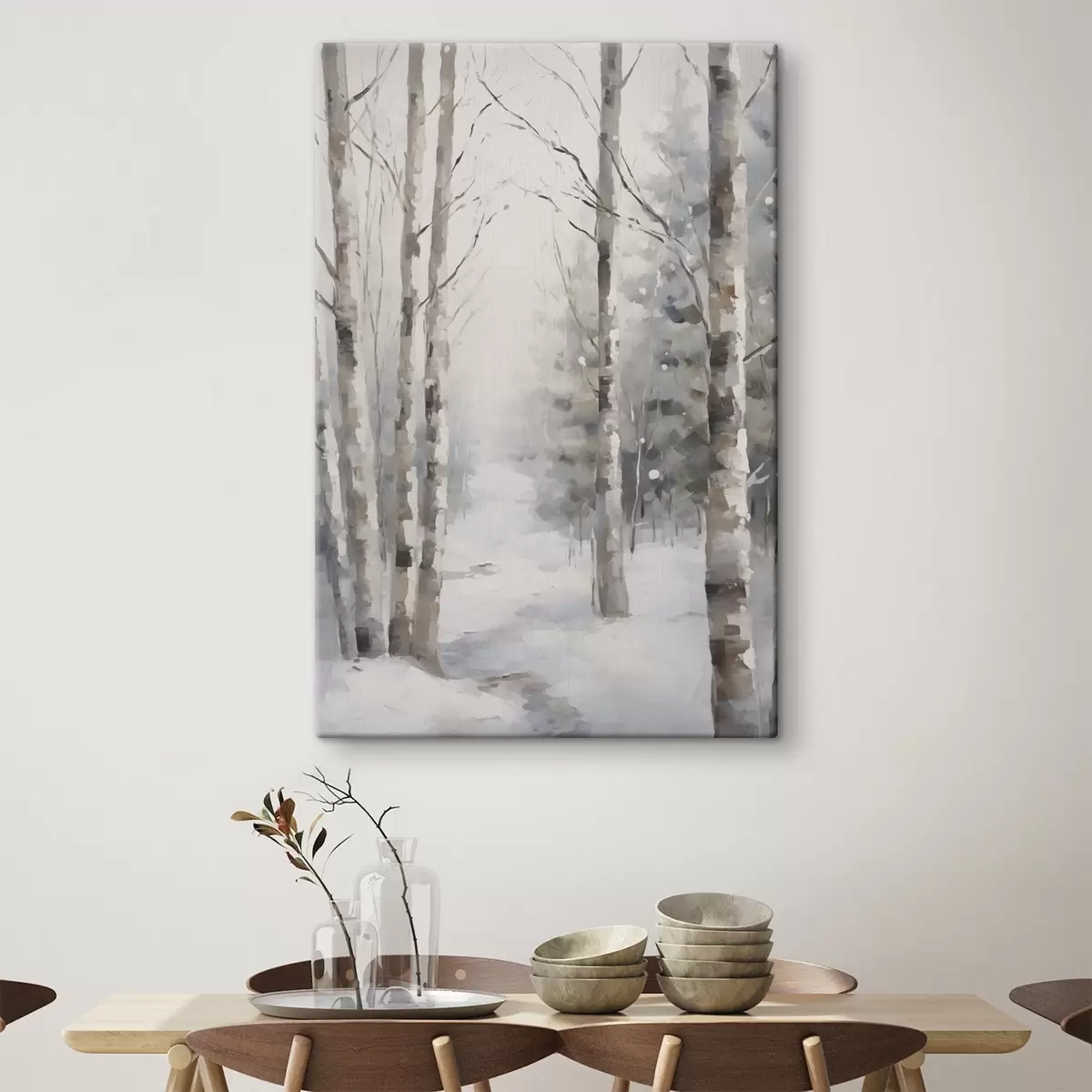Glezna Bērzu koki ziemas mežā Nr s46129