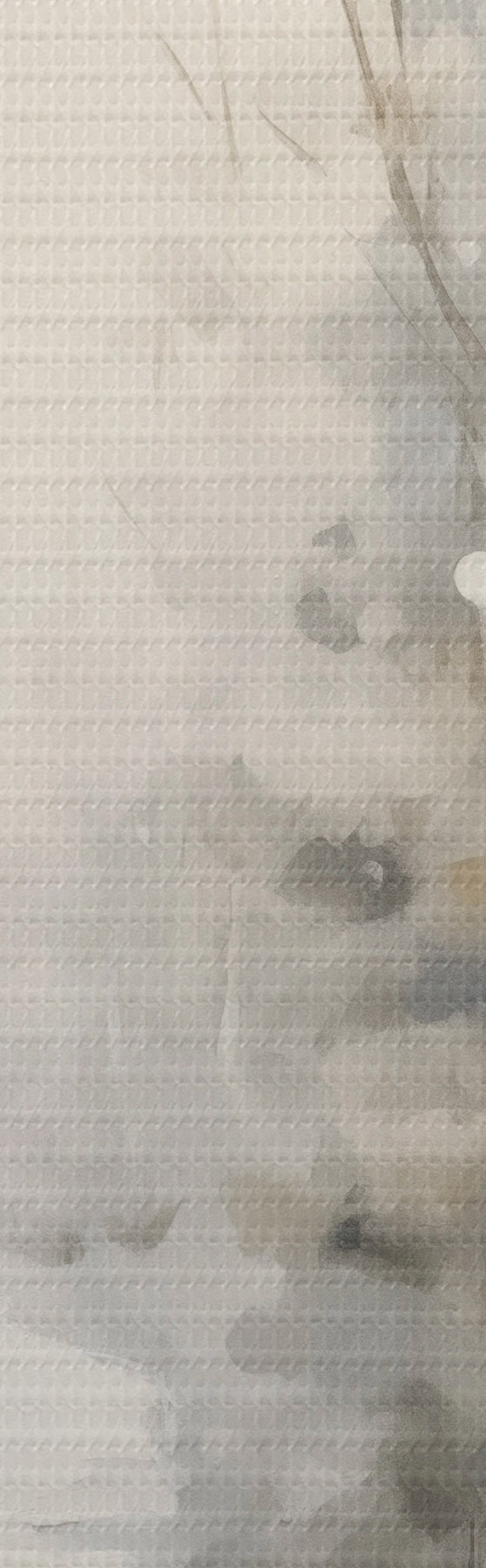 Smalkais diegu pinums uz šī audekla atgādina profesionālu mākslinieku audeklu virsmu.