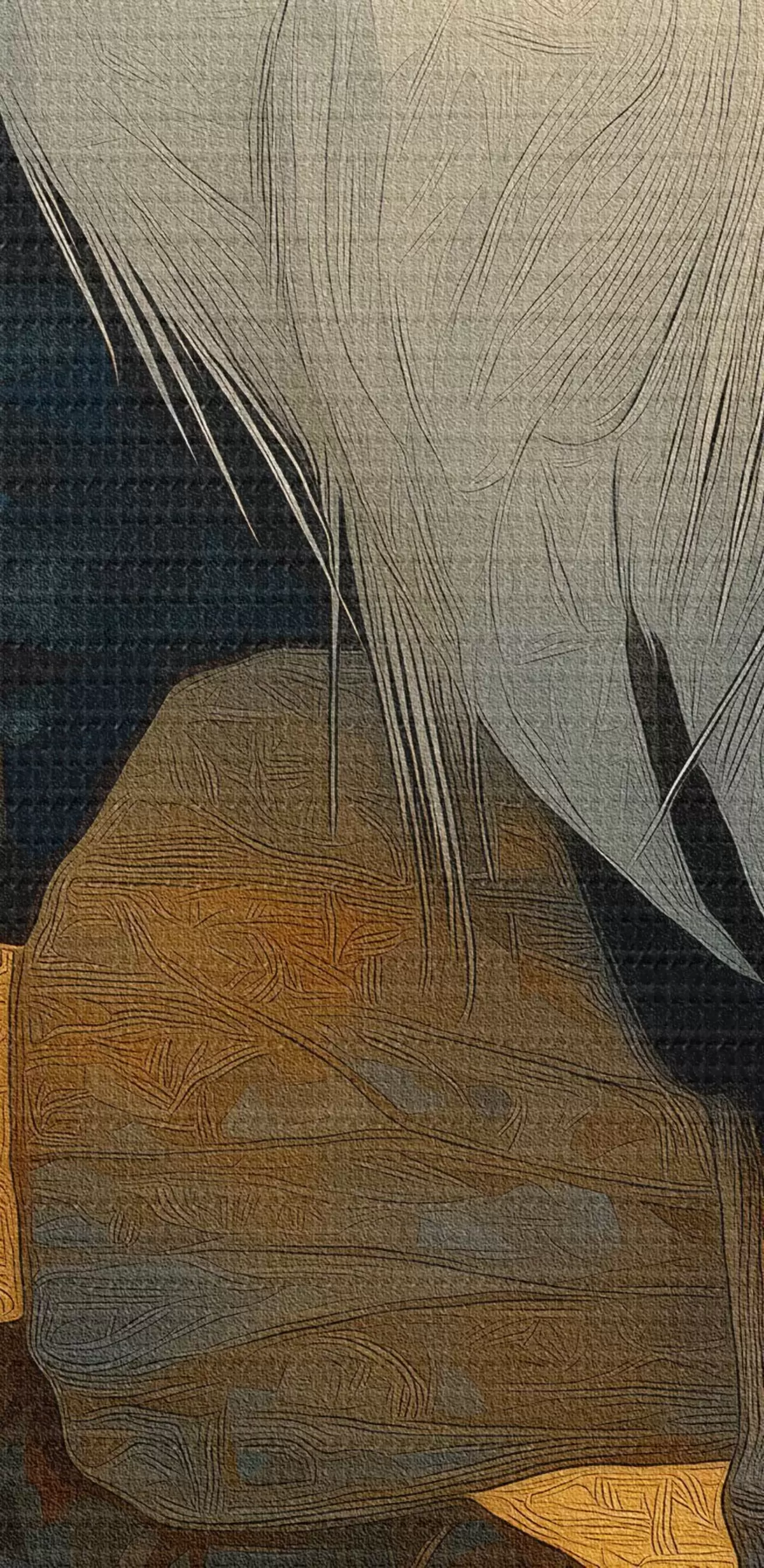 Smalkais diegu pinums uz šī audekla atgādina profesionālu mākslinieku audeklu virsmu.