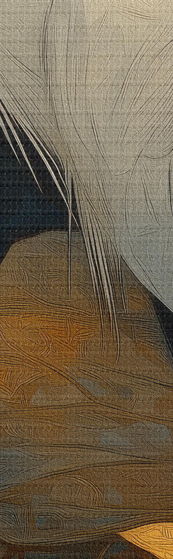 Lai izstieptu audeklu uz nestuvēm, nebojājot attēlu, mēs izmantojam spoguļattēlu.