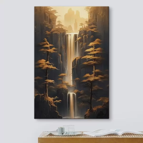 Glezna Augstas klintis ar ūdenskritumu un priedes vakara gaismā s46151