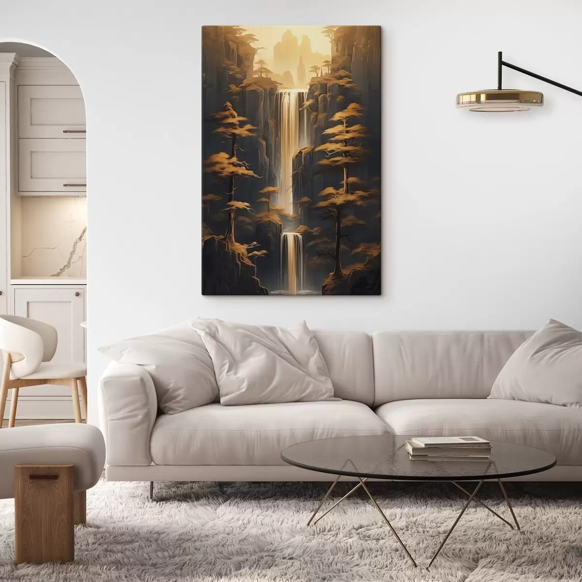 Glezna Augstas klintis ar ūdenskritumu un priedes vakara gaismā s46151