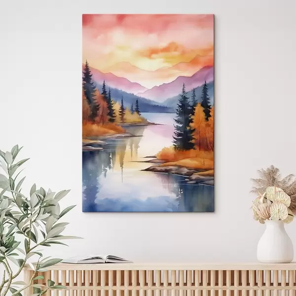 Glezna Rudens ainava pie ezera ar gaišu debesi Nr s46155
