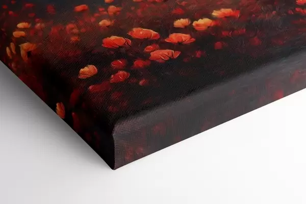 Glezna Mēness virs sarkanu ziedu lauka miglas apklātā vakara debesīs s46167