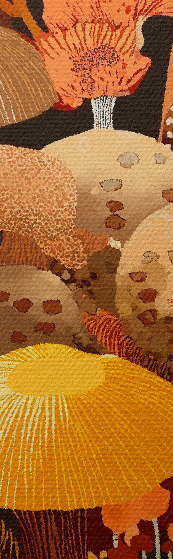 Glezna Dažādu meža sēņu kompozīcija siltos toņos s46170