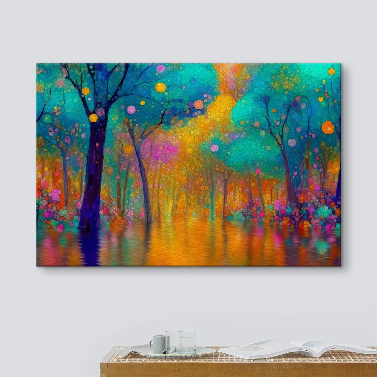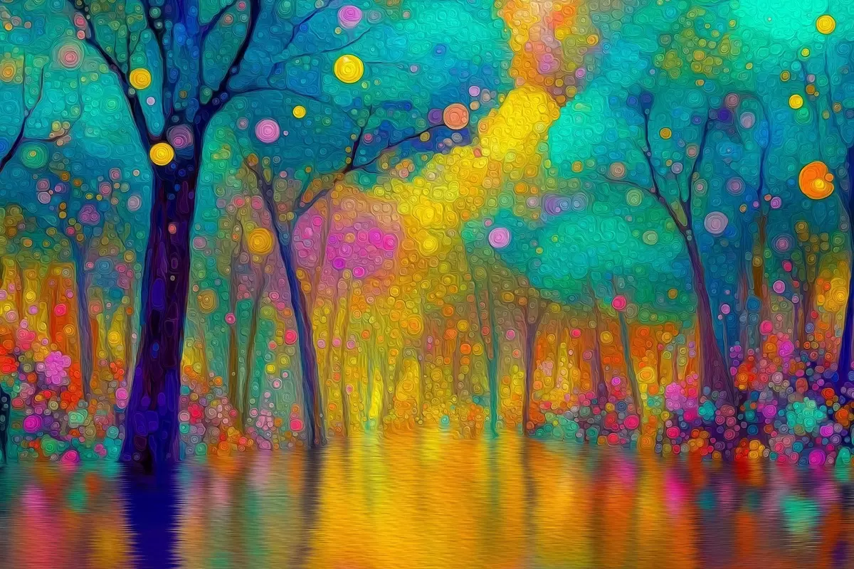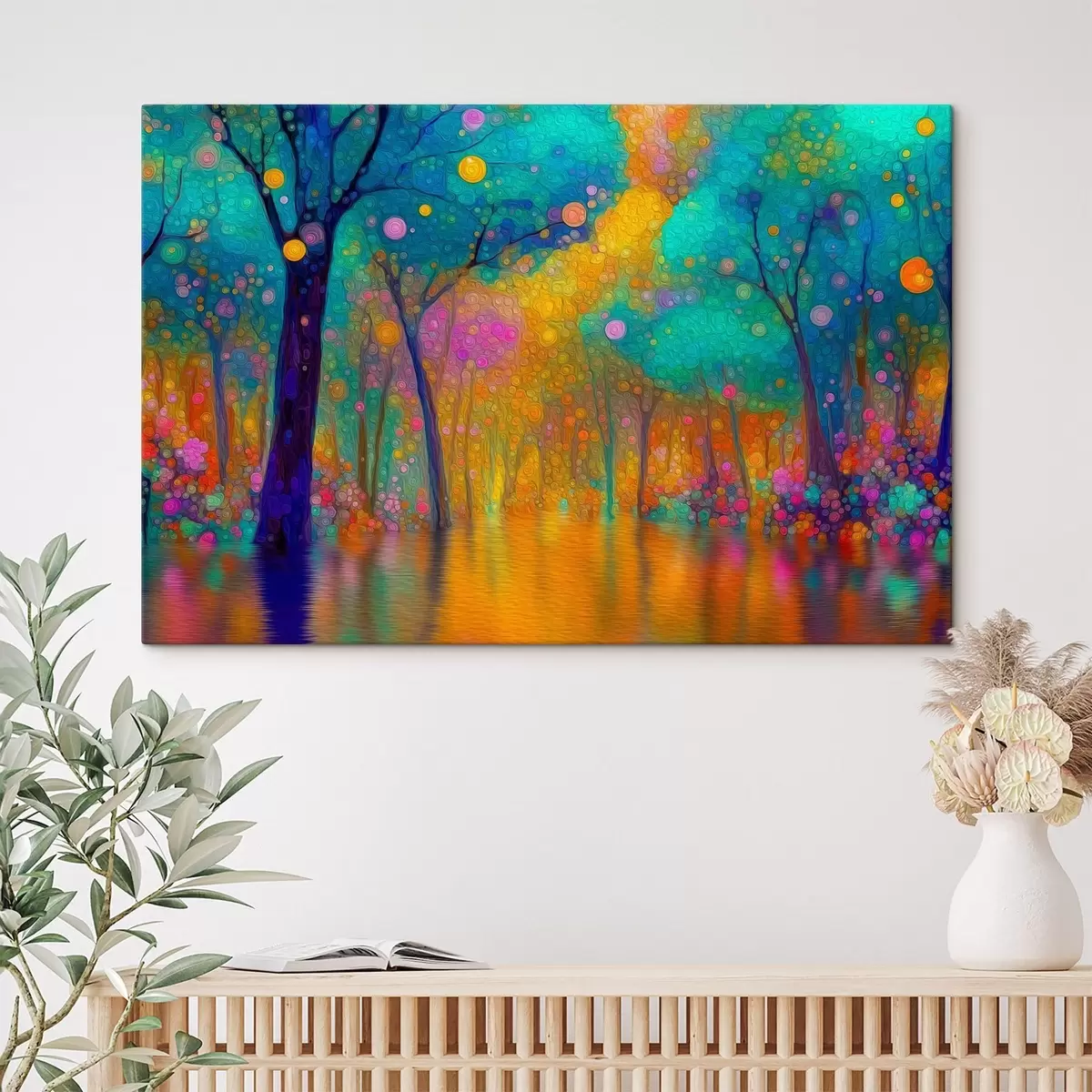 Glezna Spilgta fantāzijas mežs ar atspoguļojumiem ūdenī s46171