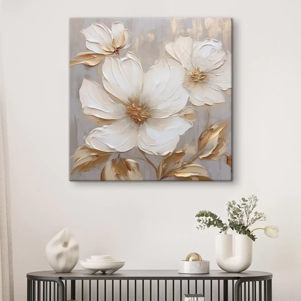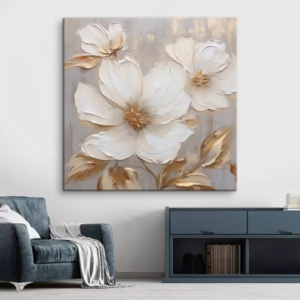 Glezna Lieli teksturēti ziedi ar krāsas triepieniem siltā krāsu gamā Nr s46176