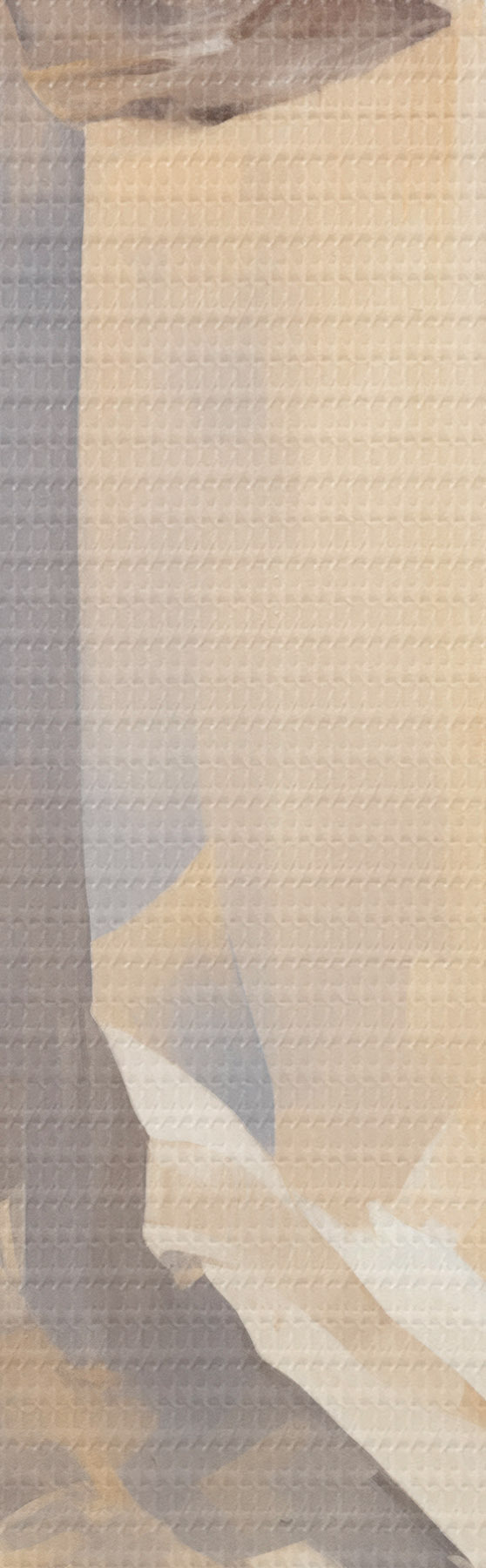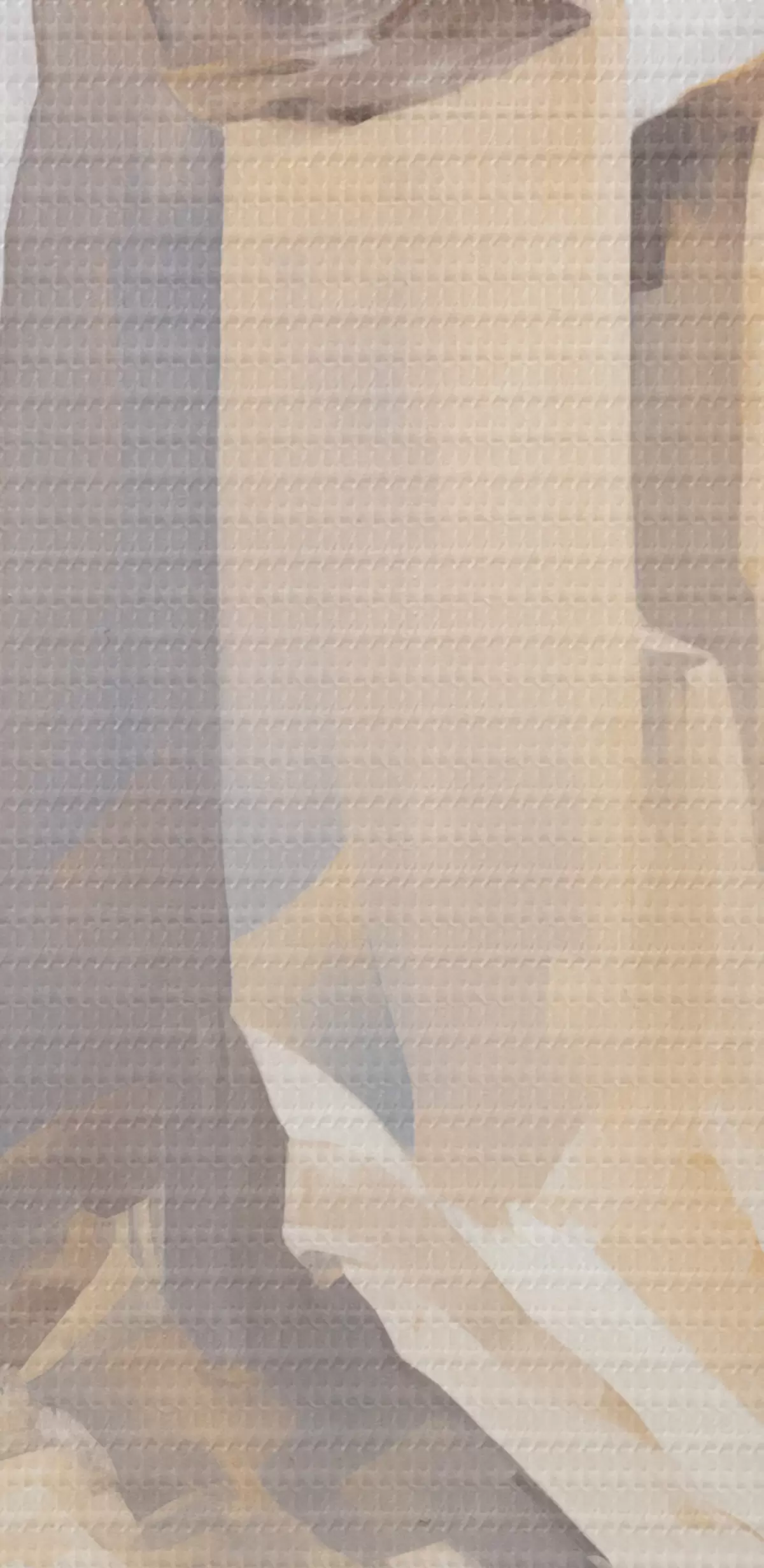 Smalkais diegu pinums uz šī audekla atgādina profesionālu mākslinieku audeklu virsmu.