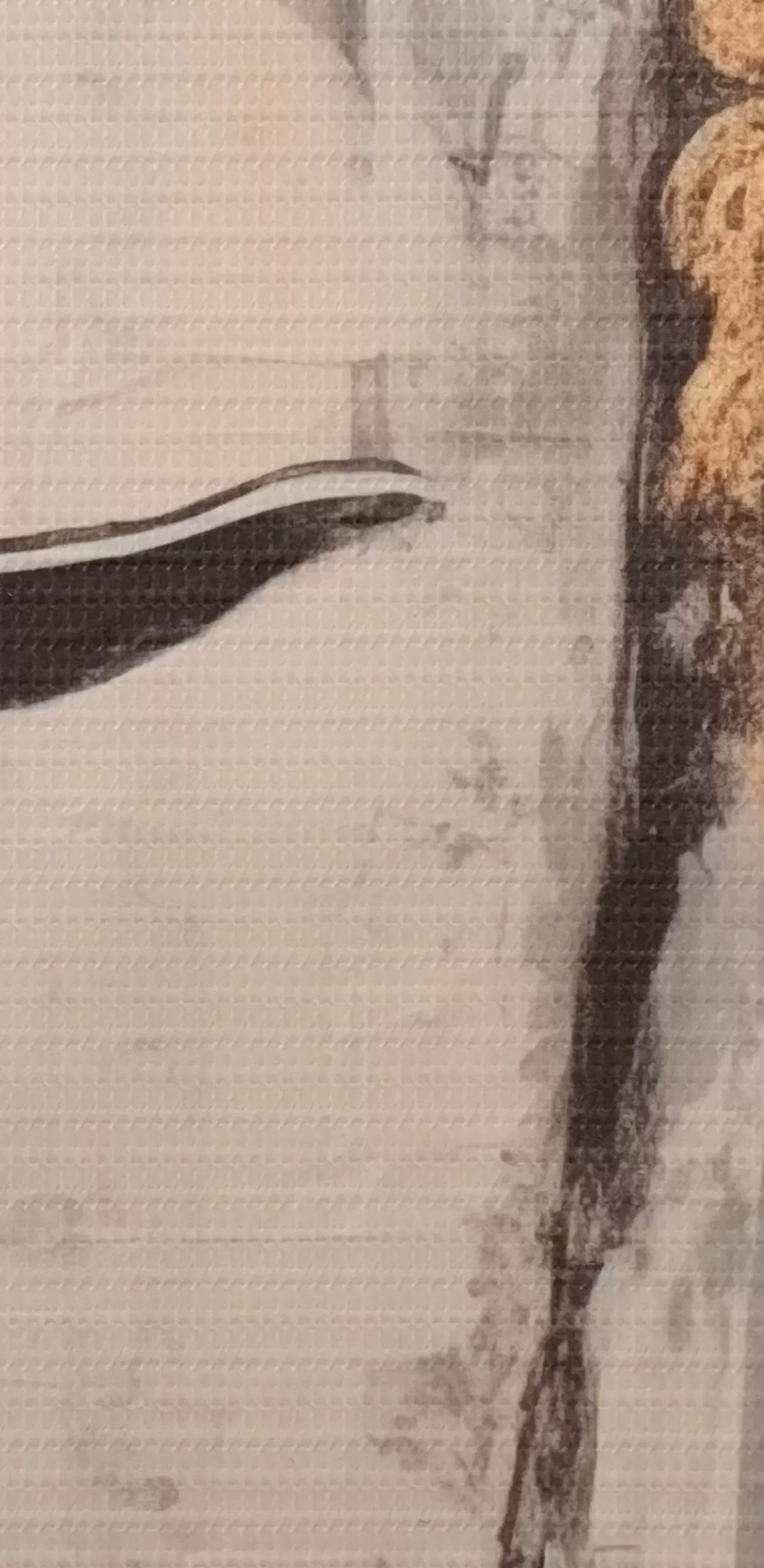 Smalkais diegu pinums uz šī audekla atgādina profesionālu mākslinieku audeklu virsmu.