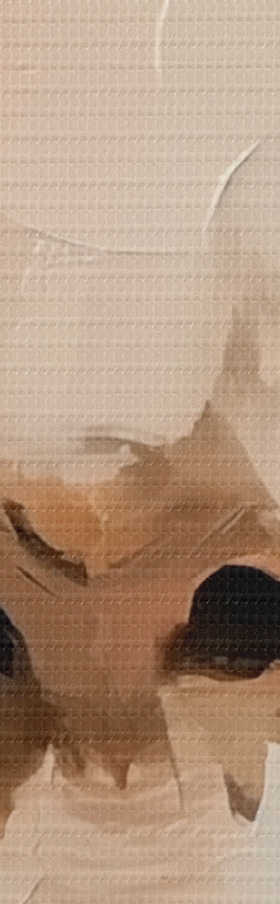 Smalkais diegu pinums uz šī audekla atgādina profesionālu mākslinieku audeklu virsmu.