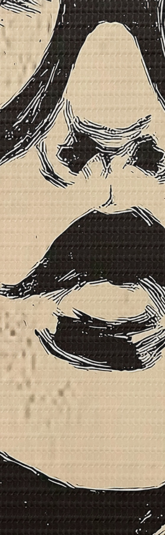 Smalkais diegu pinums uz šī audekla atgādina profesionālu mākslinieku audeklu virsmu.
