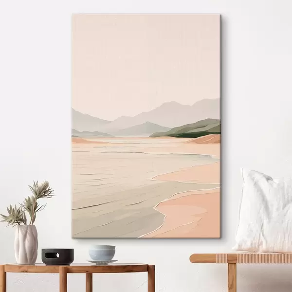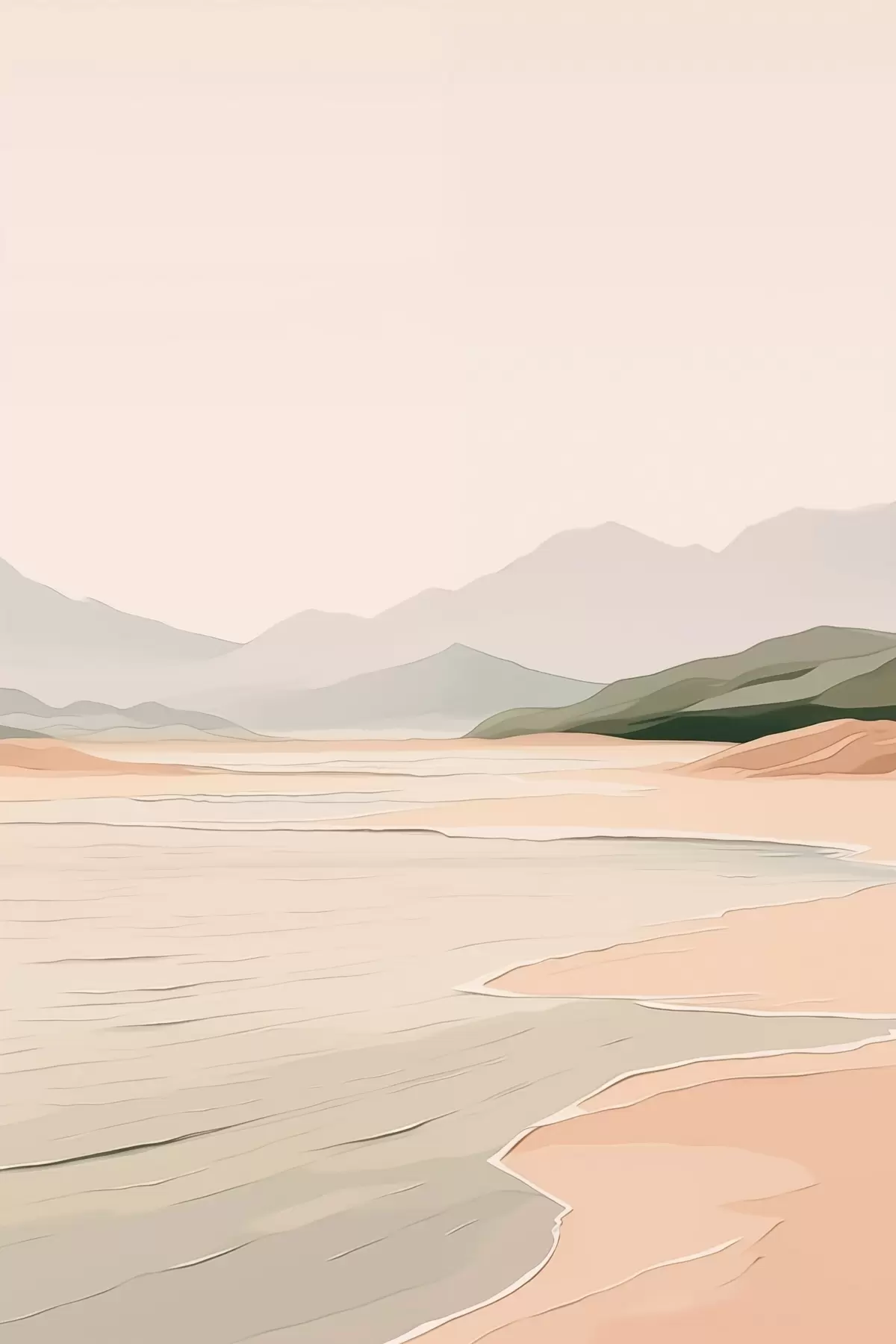 Glezna Minimālistisks ainavas ar kalniem un krastu s46248