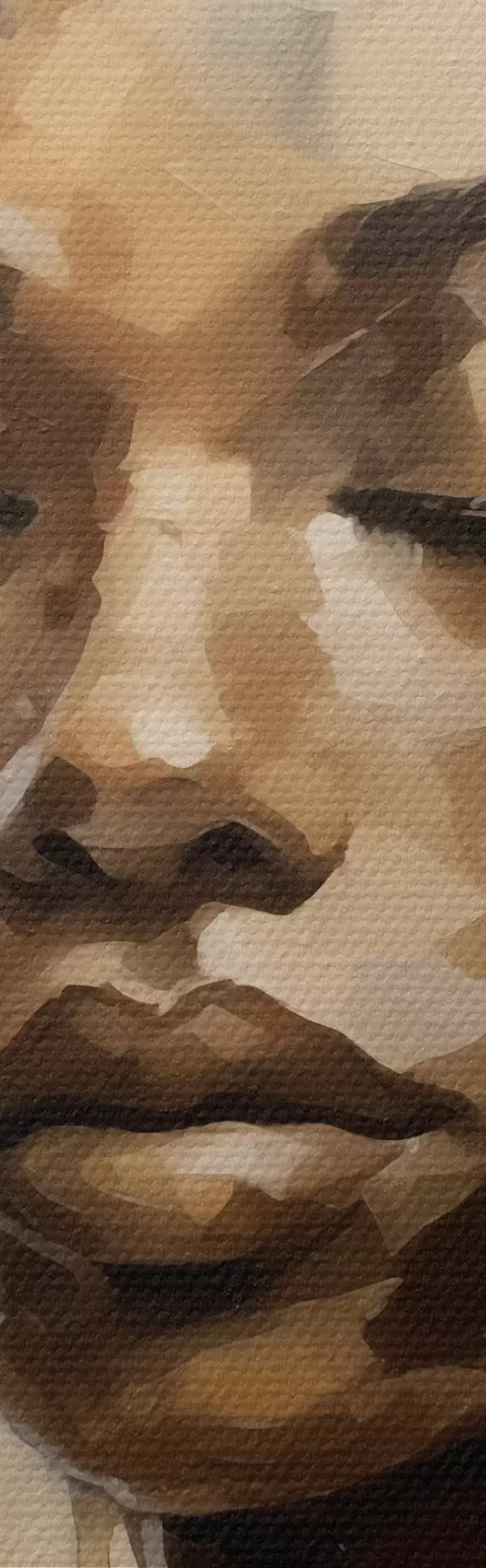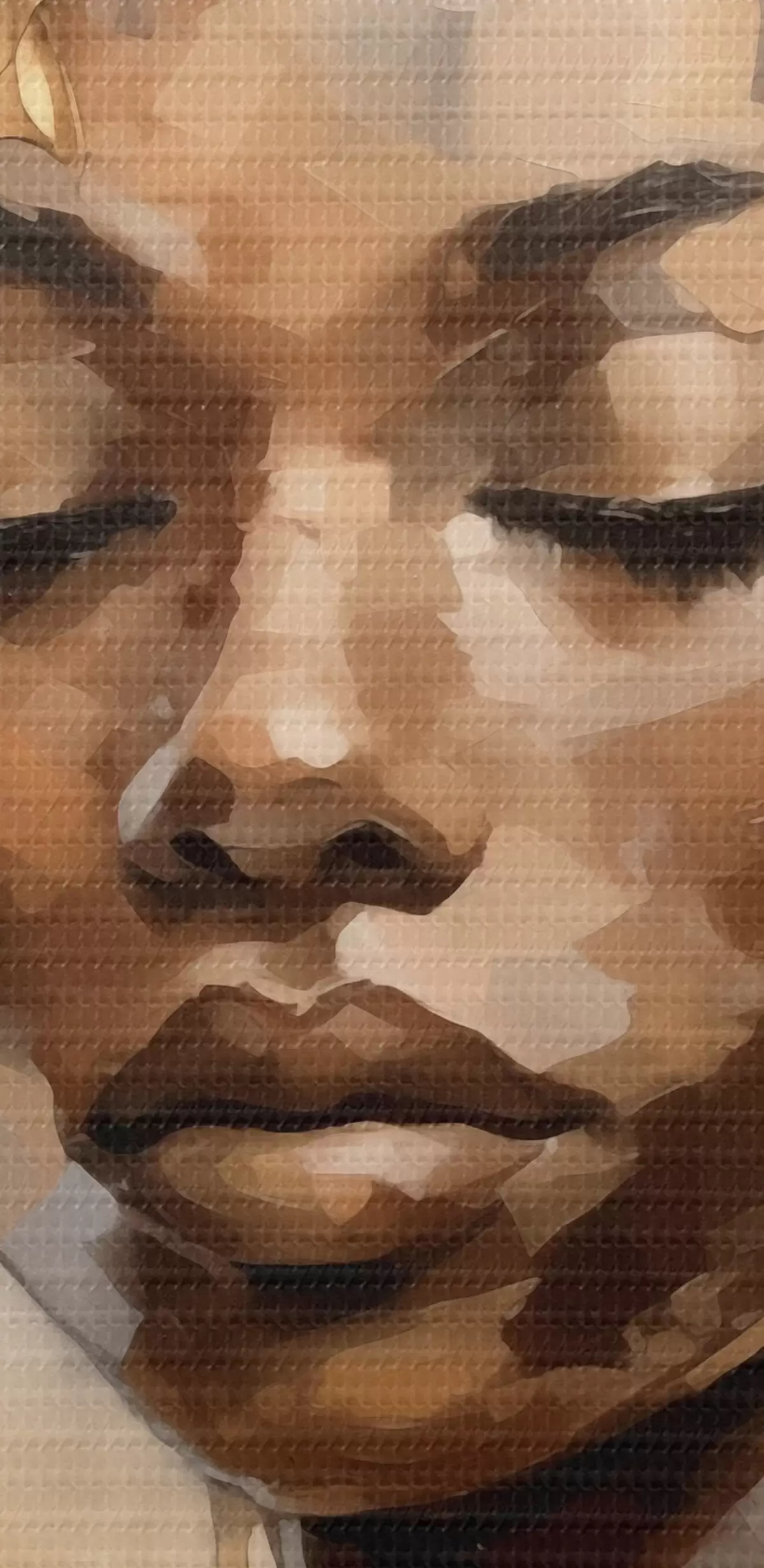 Smalkais diegu pinums uz šī audekla atgādina profesionālu mākslinieku audeklu virsmu.