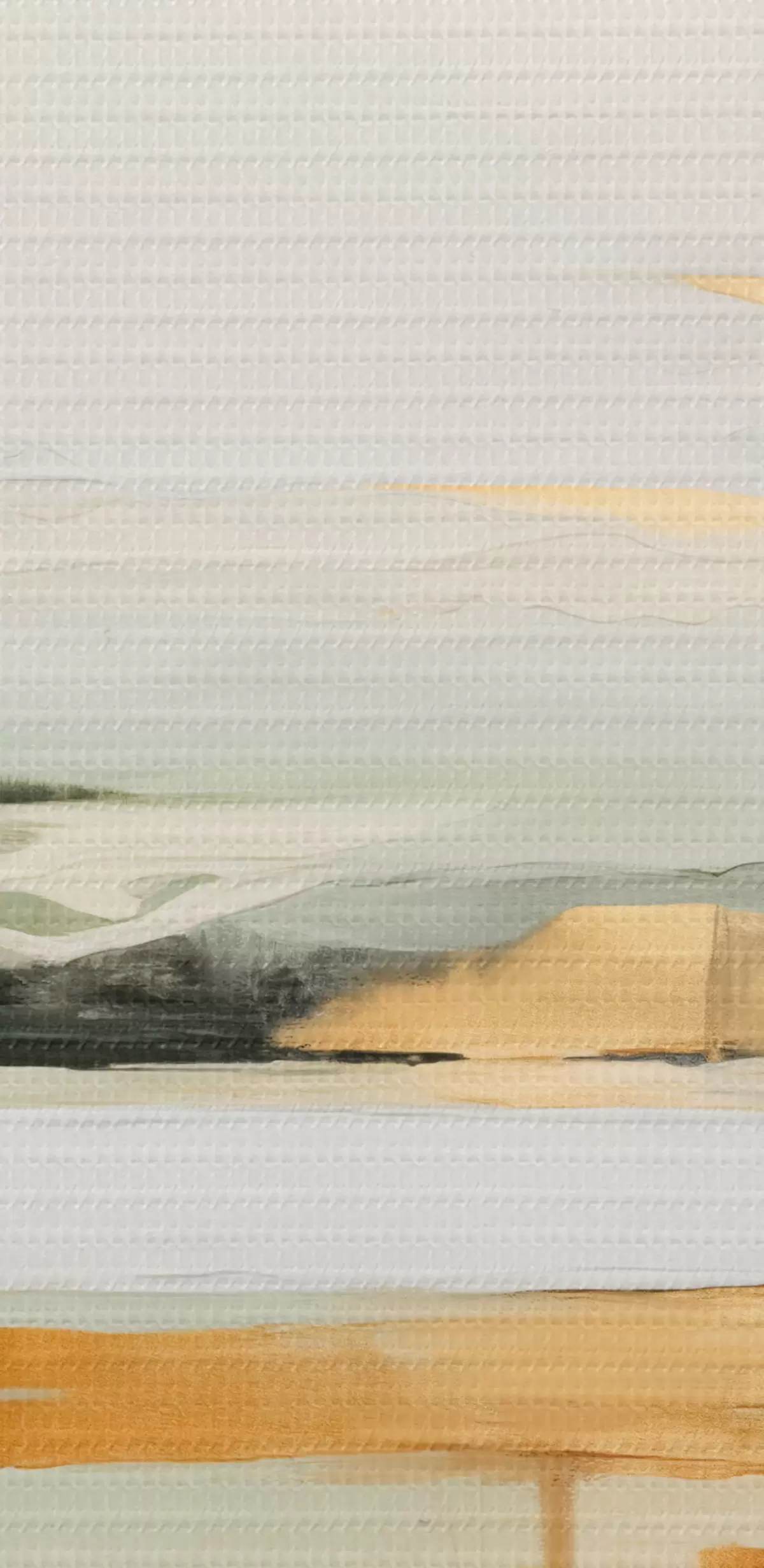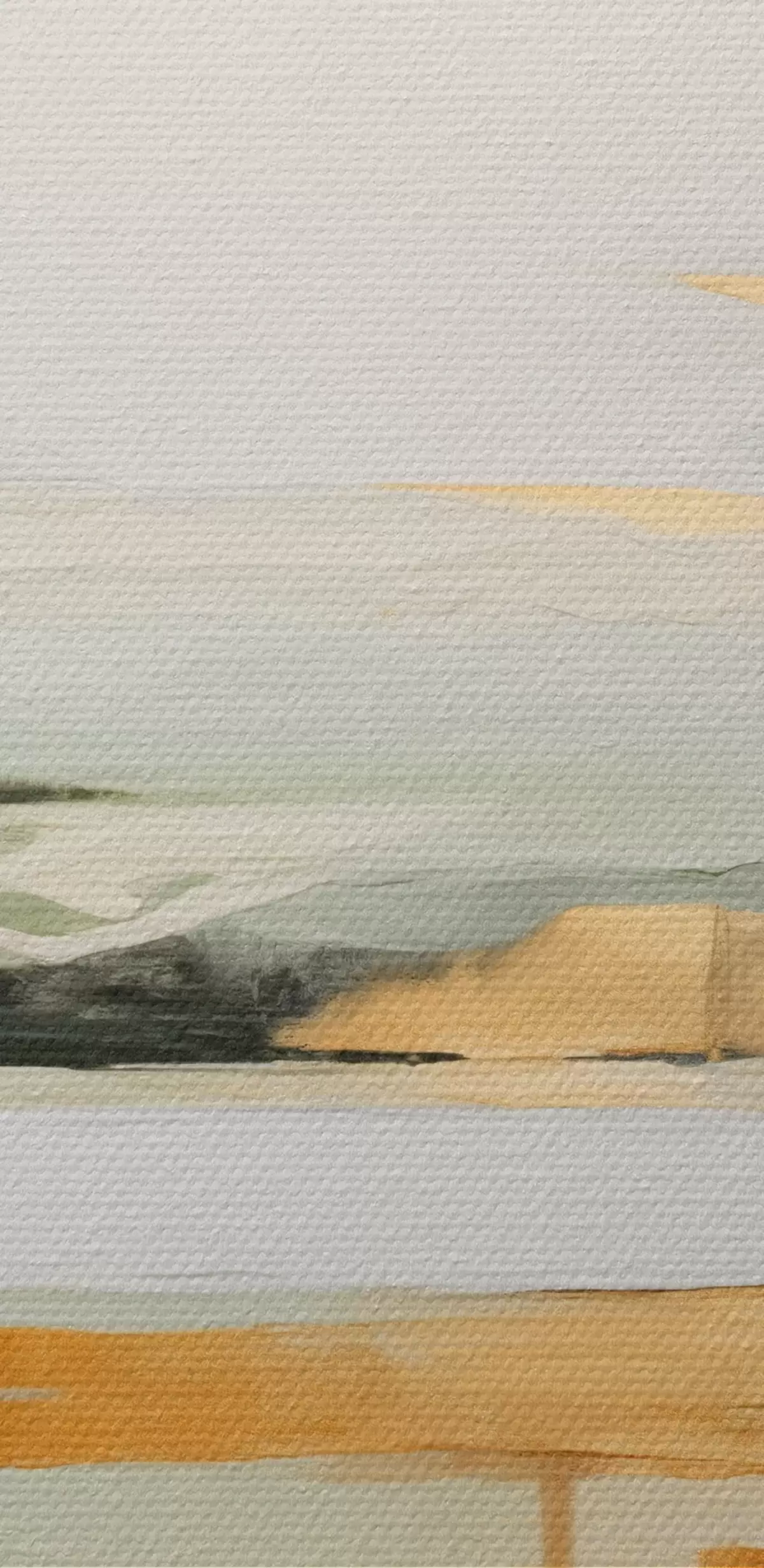 Glezna Abstrakts ainavas attēls ar dzelteniem akcentiem, minimālistiska zemes, ūdens un debesu kompozīcija ar klusinātiem toņiem. Nr s46268