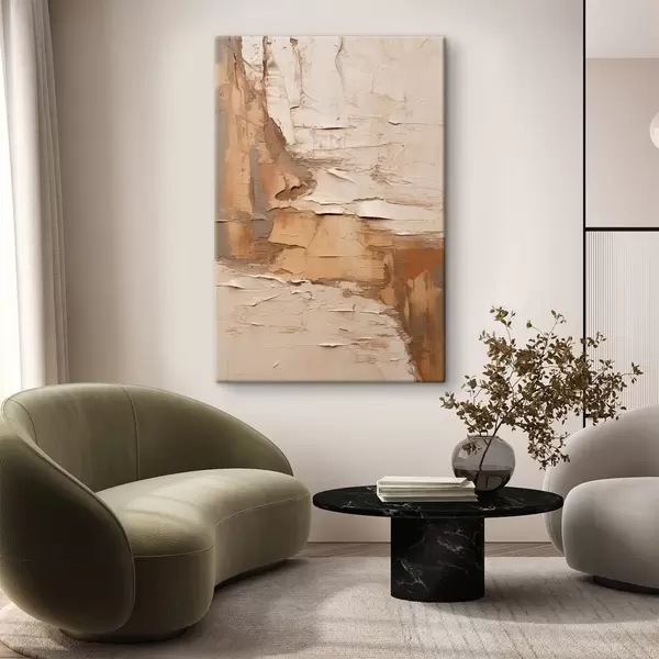 Glezna Abstrakta glezna ar bieziem triepieniem, smilškrāsas un brūnos toņos, faktūru virsmu, neitrālu krāsu paleti s46273