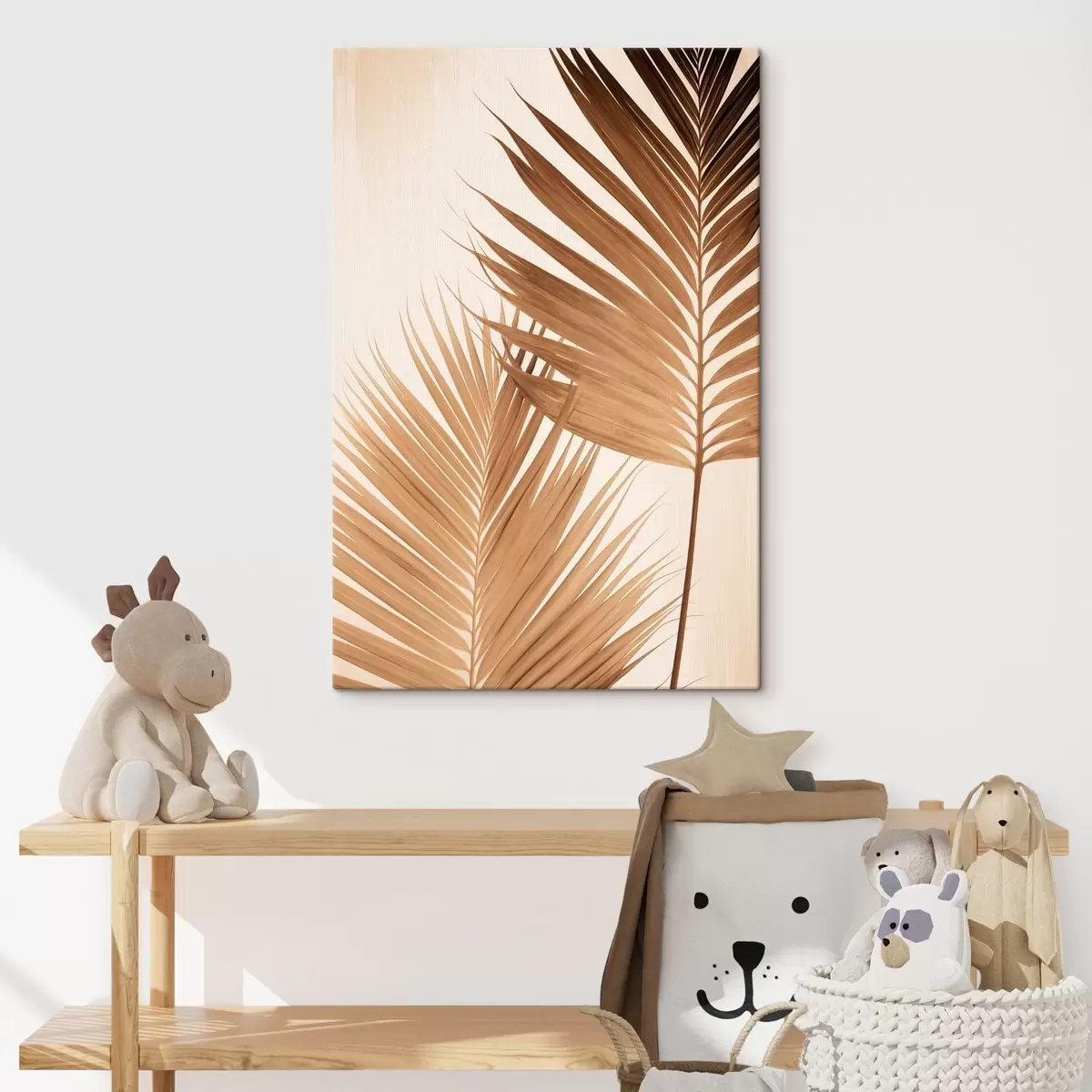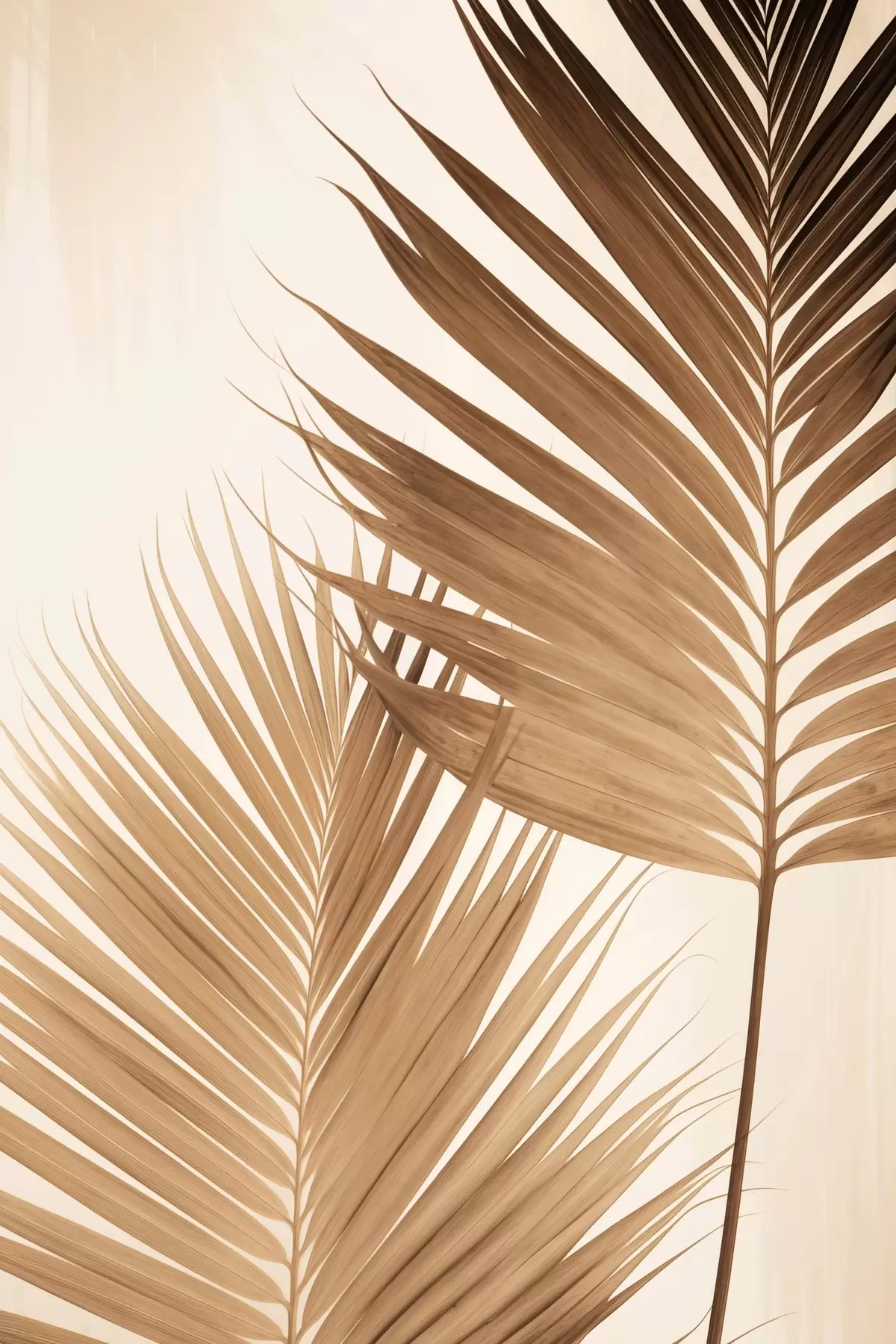Glezna Palmu lapas brūnos toņos, neitrāls fons, minimālisma stils, dabiskais apgaismojums, tropu noskaņa Nr s46274