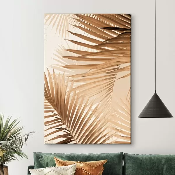Glezna Abstraktas palmu lapas brūnos toņos, tropiskas, botāniskas, dabas, minimālistiskas, elegantas, moderns dizains Nr s46275