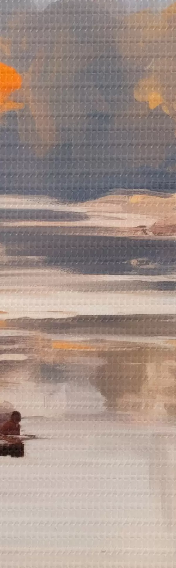 Smalkais diegu pinums uz šī audekla atgādina profesionālu mākslinieku audeklu virsmu.