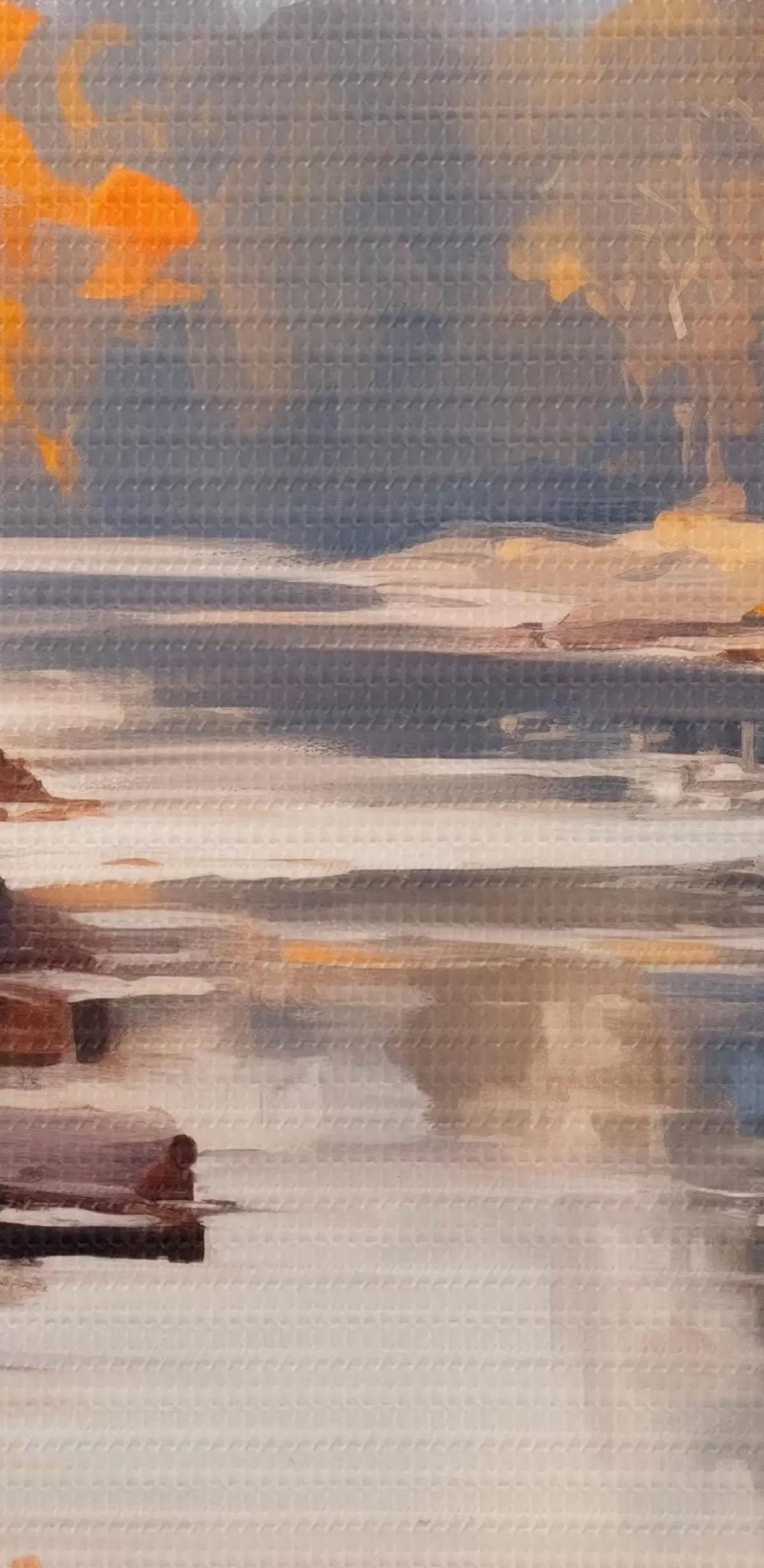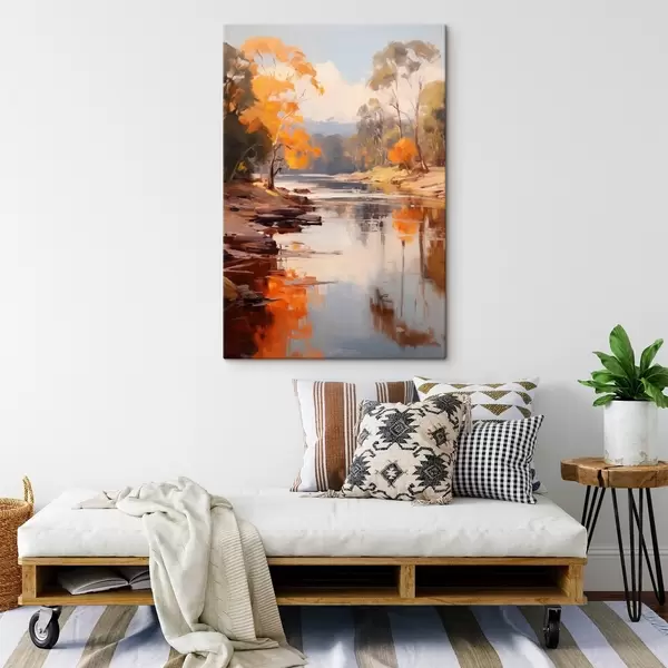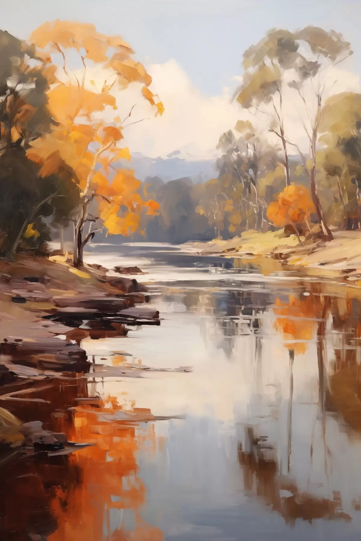 Glezna Rudens ainava, upe ar kokiem krastā, mežs fonā, atspoguļojumi uz ūdens Nr s46280